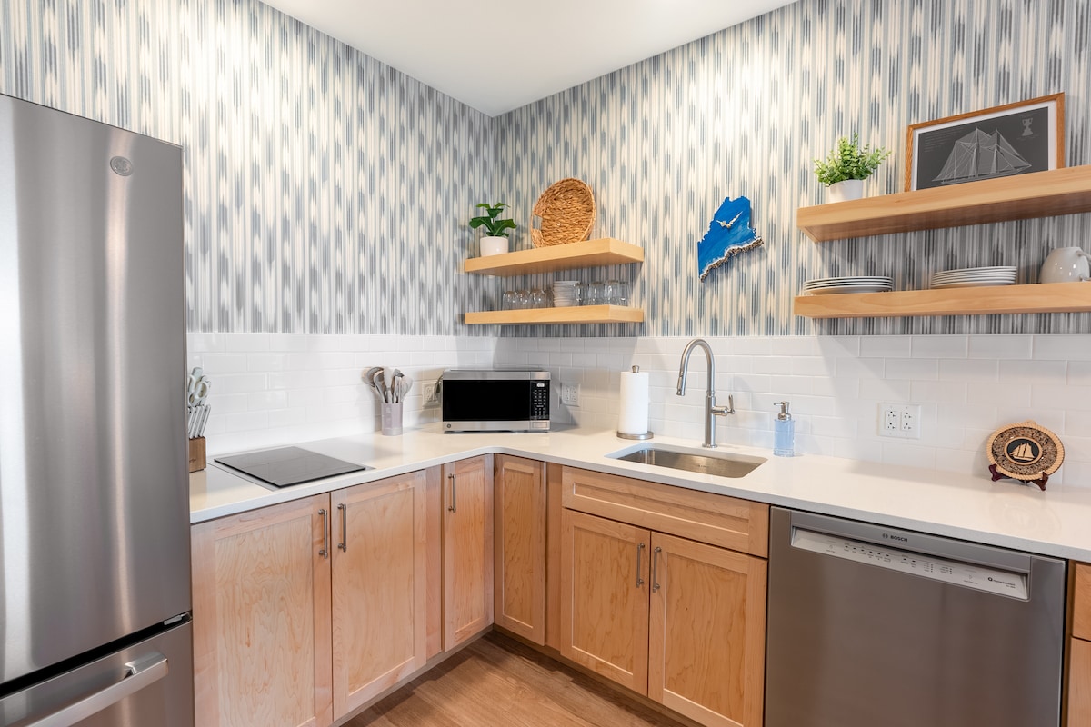Estos apartamentos nuevos de tamaño king cuentan con cocina completa, sala de estar abierta con chimenea eléctrica, sillón de masaje, (2) televisores inteligentes de 55 pulgadas, cama tamaño king y sofá cama. El balcón ofrece vistas parciales de Frenchman Bay y las islas Porcupine. El baño tiene una ducha a ras de suelo de gran tamaño con un cabezal de ducha de efecto lluvia, un asiento de inodoro de bidé, un tocador doble, batas de felpa y un espejo de maquillaje. Del 26 de octubre al 7 de mayo, los servicios de la propiedad estarán cerrados por temporada. Pregunta al anfitrión.