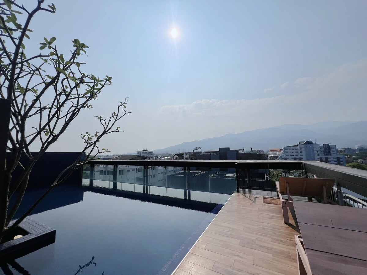 Acogedor loft moderno en ♥ Nimman/piscina en la azotea/vistas al monte