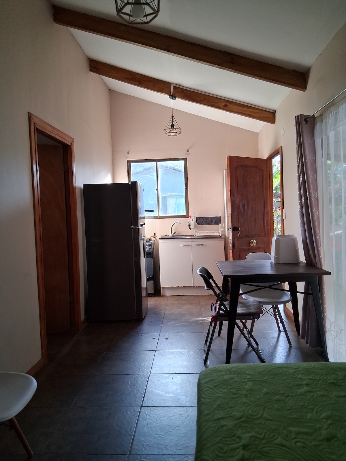 Pequeña y cómoda cabaña, de un ambiente, en los altos de una casa. Es una cabaña independiente y totalmente equipada. Está cerca del mar, de la calle principal (Atamu Tekena) y del aeropuerto. La hemos decorado con cariño y esperamos sea un buen refugio para disfrutar de Rapa Nui. También tiene una terraza donde podrás sentarte y disfrutar del atardecer cuando vuelvas de tus excursiones.