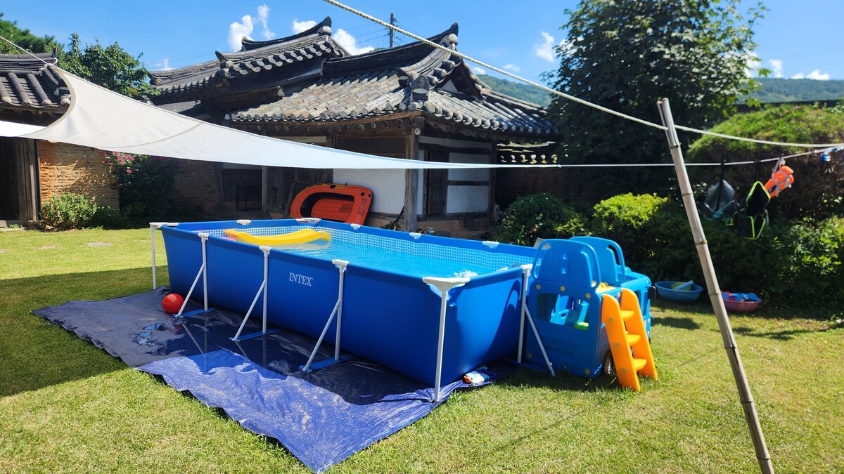 Es un anexo de una casa unifamiliar ubicada en una zona residencial unifamiliar tranquila. En el gran césped del patio hay 2 perritos pequeños y carpas en el estanque. Puede hacer una barbacoa en el césped y divertirse en el karaoke subterráneo (está equipado con aire acondicionado y calefacción). El paisaje de la mañana es muy bonito. Disfruta de la naturaleza en una mesa de jardín tranquila y pacífica con una taza de café. . . Varias flores siguen floreciendo y muriendo. El amplio campo detrás del edificio también es digno de ver, ya que el arroz cambia de verde a amarillo según la temporada ^ ^ * Check-in - 4 p. m. (el almacenamiento de equipaje está disponible desde la mañana) * Check-out - 12:00 * Barbacoa con fuego de carbón - 20 000 wones (incluso si llueve, es posible si el viento no es fuerte, y en invierno se enciende un calentador y una cortina cortavientos). * Karaoke subterráneo - Reglas de uso -Tarifa: 10,000 wones sin límite (nueva canción actualizada todos los días)/área para fumadores/bebidas alcohólicas, bebidas y alimentos no permitidos. * Ofrecemos un dispensador de agua, aire acondicionado, TV, cocina eléctrica, hervidor eléctrico, cafetera de granos, plancha, microondas, lavadora, tostadora, nevera, arrocera eléctrica, champú, acondicionador, gel de baño, toallas.