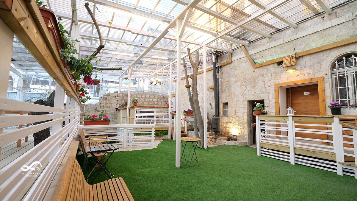Disfruta de una suite boutique privada, elegante y de lujo en el corazón de Jerusalén. 2 dormitorios, un jacuzzi privado, un patio privado. Ubicado a solo 1 minuto a pie del centro comercial Mamila y del casco antiguo, y a solo 2 minutos del centro de la ciudad, nuestra ubicación ofrece un cómodo acceso a restaurantes y lugares sagrados. Disfruta de la comodidad de la llegada las 24 horas del día, los 7 días de la semana, y aprovecha nuestro servicio de consulta de guía turístico de cortesía. Nos complace tener la oportunidad de hospedarte y ofrecerte una estadía inolvidable.