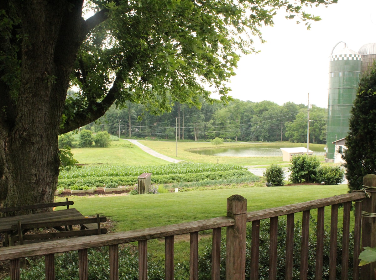 Una casa de campo privada completamente moderna con cocina americana junto a nuestra granja de piedra de 1800 en 11 acres con prado, bosques, sendero para caminar, estanque y arroyo a lo largo del río Conestoga. A 10 minutos del centro de la ciudad, a 15 minutos de los outlets y del Sight Sound Theatre, fácil acceso a los centros turísticos. A menos de 10 minutos de la Universidad de Millersville. Entorno muy tranquilo lejos del tráfico. Uso de la terraza al aire libre. Somos una granja de verduras y flores. Seguimos todos los estándares estatales y de AirBnB para limpiar y desinfectar.