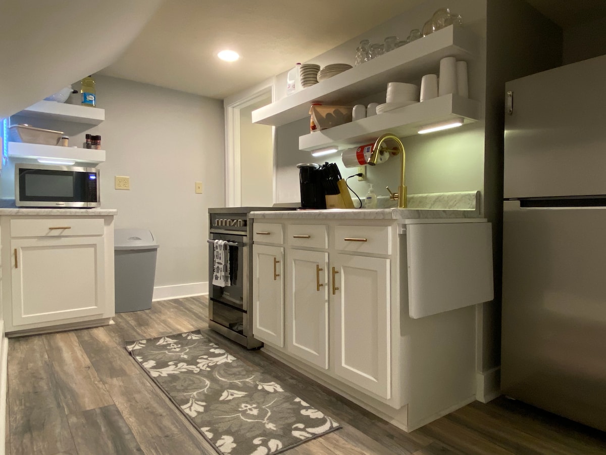 Ellie's Escape lleva el nombre de nuestra hija mayor a la que le encanta viajar. Ha viajado con nosotros desde que era una bebé y está lista para salir a la carretera en cualquier momento. Este apartamento de 1 dormitorio en la planta baja, completamente renovado y actualizado, forma parte de una casa histórica construida en 1900. Con casi 1000 pies cuadrados, es mucho más grande y ciertamente más cómodo que una habitación de hotel típica. Situado en el distrito histórico del centro de la ciudad, está a poca distancia a pie de tiendas, restaurantes y mucho más.