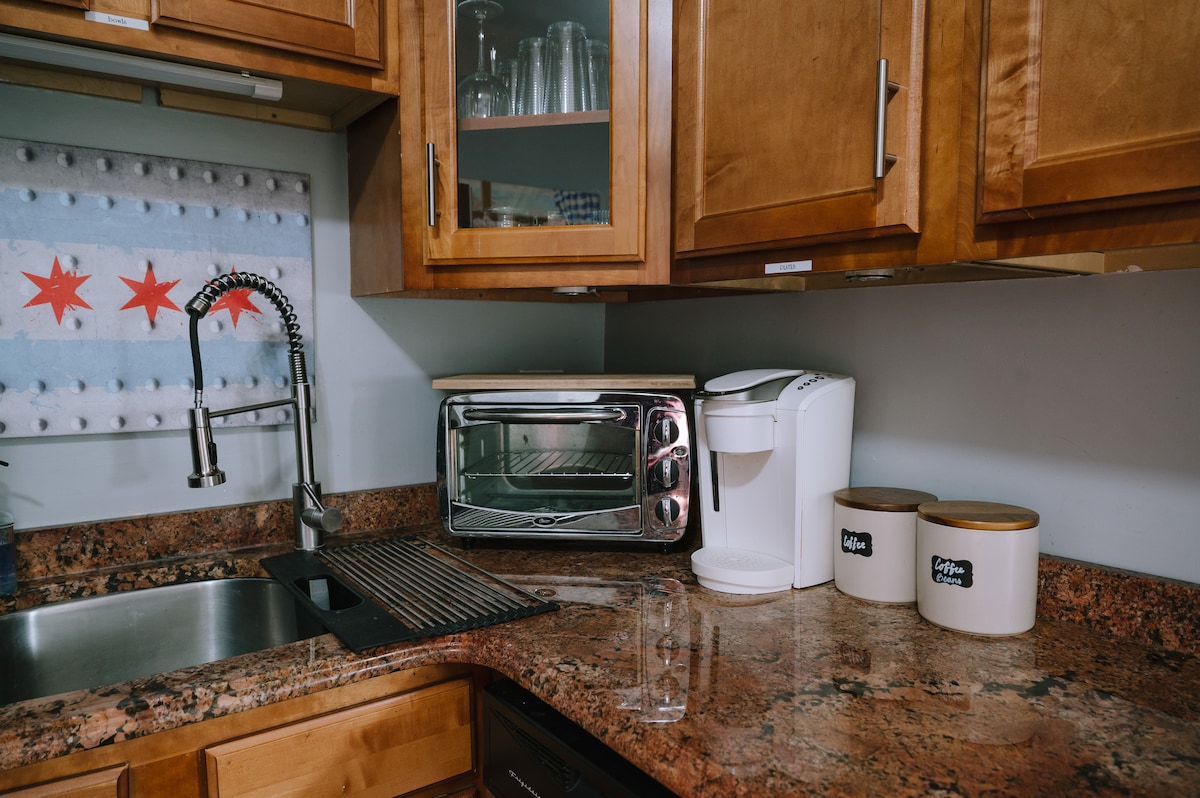 Apartamento actualizado, limpio y privado en el exclusivo barrio de Pilsen de Chicago. Situado en una calle tranquila y arbolada con entrada privada, es el lugar perfecto para descansar después de un día explorando este gran barrio y la ciudad. El apartamento tiene una cocina completa con todo lo necesario para preparar el café de la mañana o preparar una comida. ¡Convenientemente ubicado para McCormick Place y muchas de las atracciones de la ciudad, incluyendo West Loop, el centro de la ciudad, United Center, Grant / Union / Douglass Park y más!