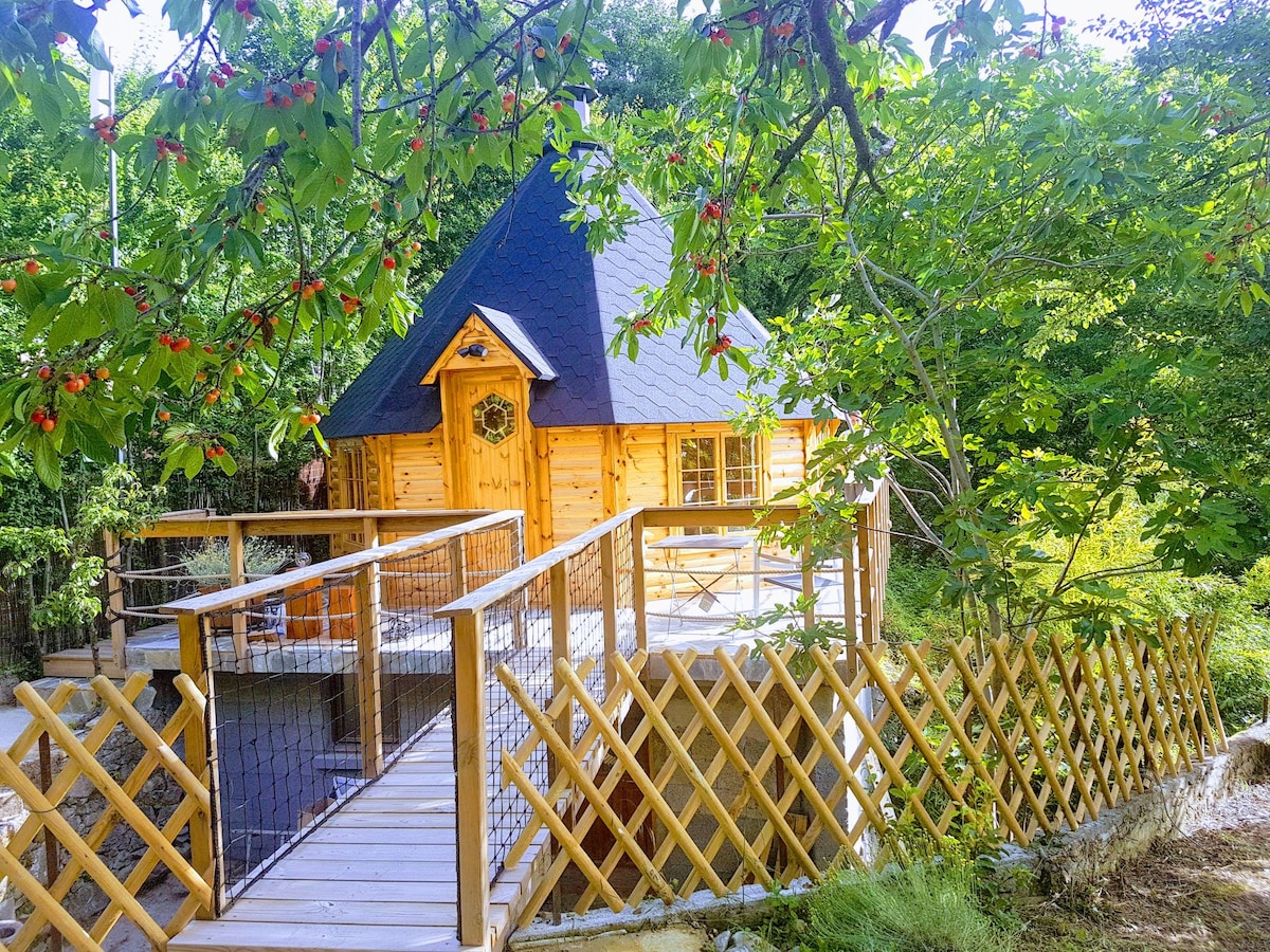 Chalet atípico de forma octogonal con acceso a través de una pasarela,decoración cálida y ambiente mágico garantizado.Totalmente equipado con todas las comodidades necesarias.Además,una parrilla central permite disfrutar de una comida agradable.Para una ocasión o simplemente para descansar,o cambiar de aires,encontrará aquí en el corazón del centro de Córcega diferentes actividades.La situación geográfica es ideal para visitar Córcega.Le propongo además el aperitivo ♡ o la cesta de la parrilla para amenizar su estancia.