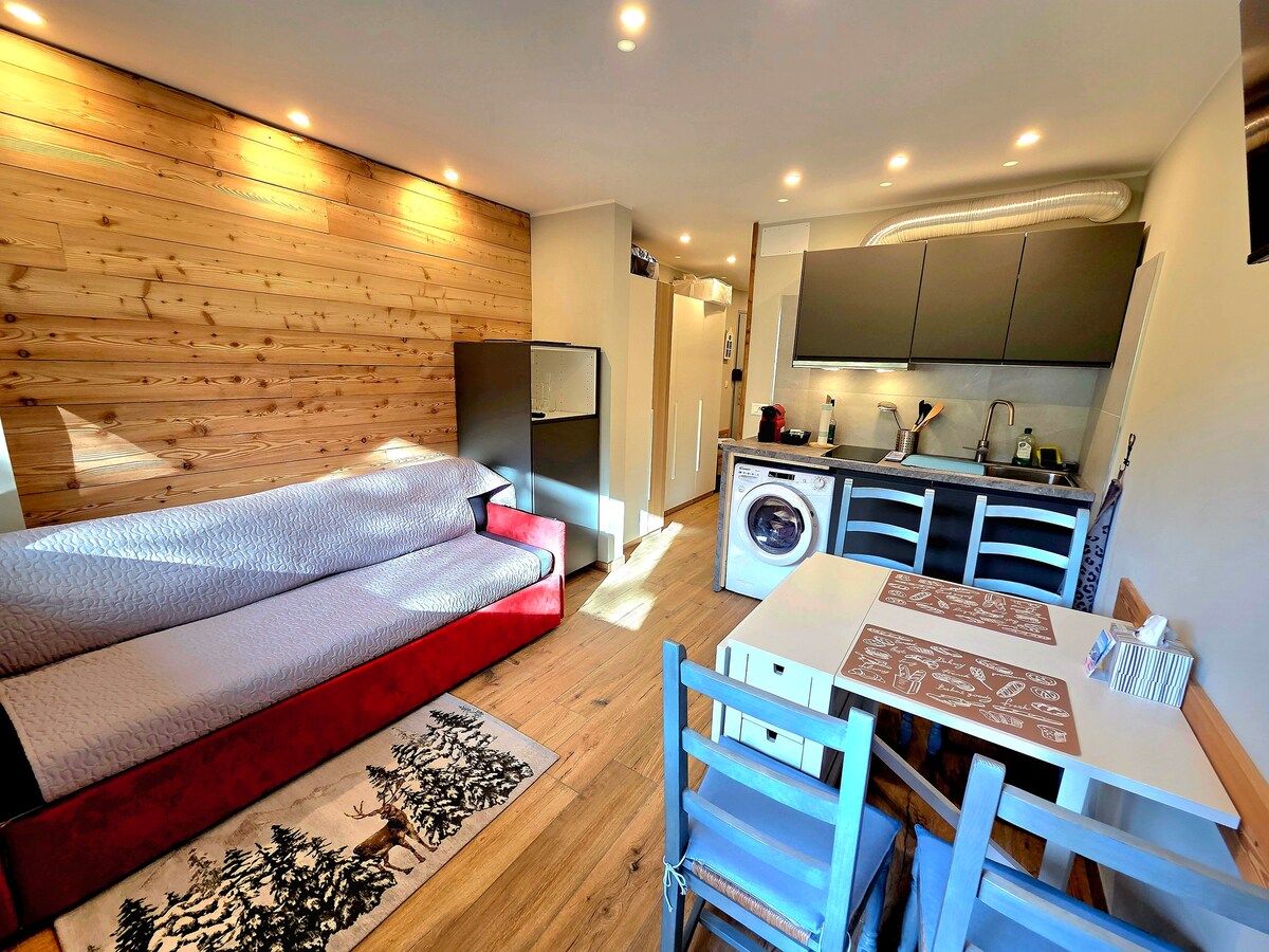 Le ofrecemos un apartamento de 30 m2 , recientemente renovado , con un balcón orientado al sur .A su llegada encontrará sus camas hechas, así como la ropa de baño . Con una ubicación ideal para practicar esquí, senderismo y cerca de las tiendas. A 200 metros de la piscina de patinaje. La cocina está equipada con lavavajillas, horno, microondas, cafetera tipo «nespresso» y horno de raclette.