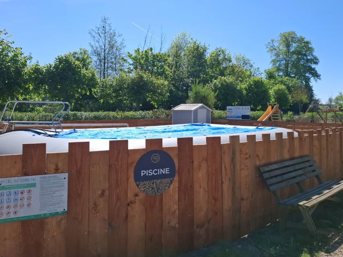mobil home para 4 personas, camping con piscina, pastos