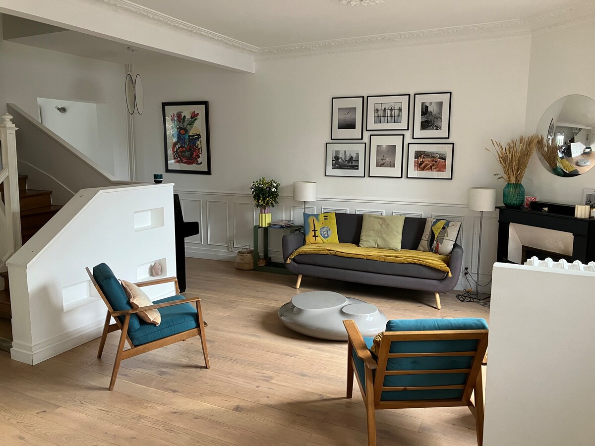 Casa antigua de 180 m m en el centro de Asnieres En la planta baja la casa tiene una sala de estar doble, una cocina equipada y una entrada con inodoro. En el 1er 2 dormitorios grandes (uno doble y otro individual) un cuarto de baño con ducha y WC separados. En el segundo 3 habitaciones para niños con 2 baños con ducha y aseo separados (4 camas). La casa fue completamente renovada en 2020. La casa también cuenta con un jardín urbano de más de 100 m ². sala de tv en el sótano Estacionamiento posible bajo petición