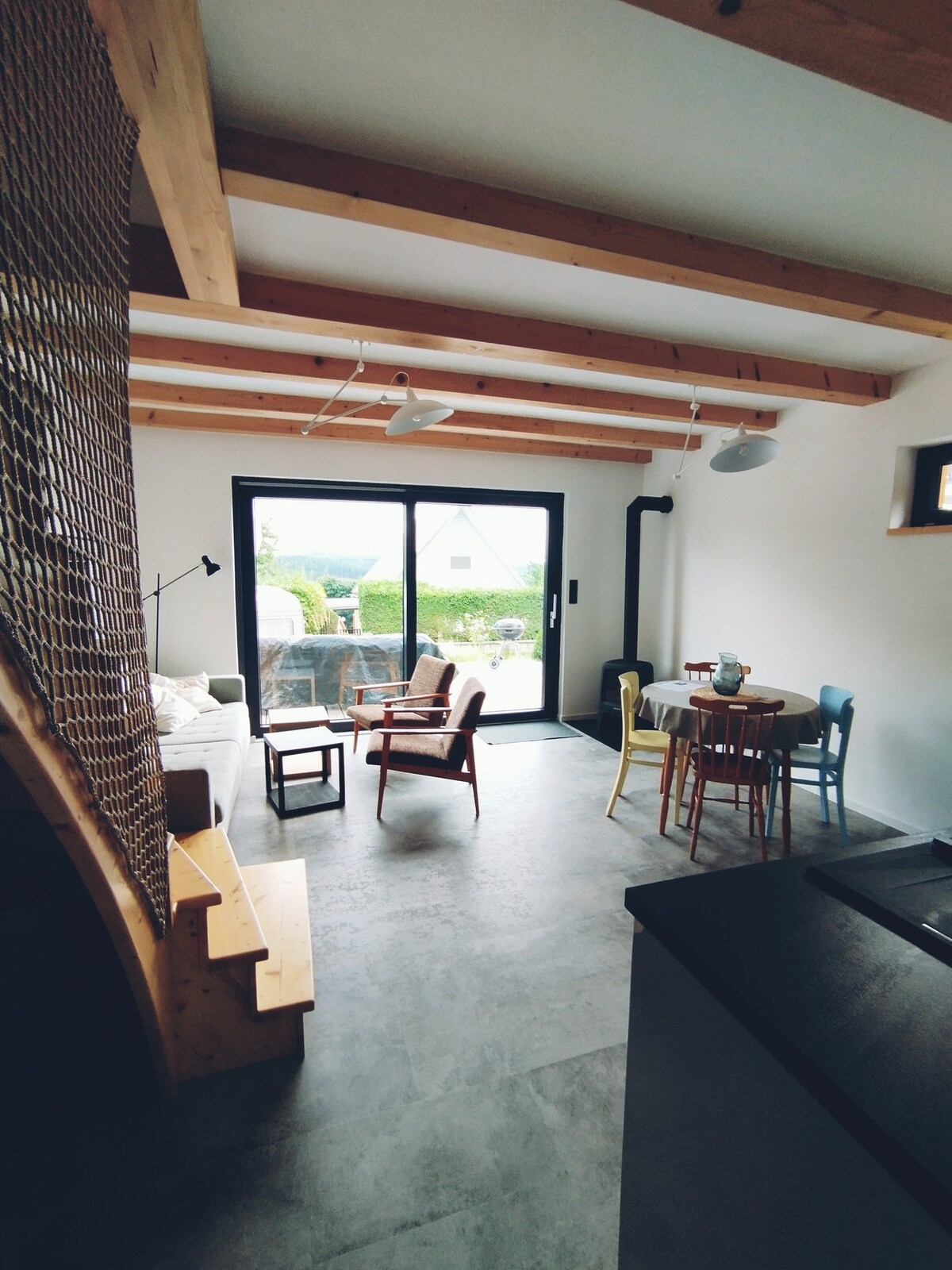 Je dřevěný, je pohodlný, je v zahradě. Na venkově na Vysočině jsem pro svoji rodinu postavil moderní chalupu zasvěcenou odpočinku. Ponořená do klidu zahrady s kusem přírody. Sad, rybníčky, neomezený prostor. Toto místo jsme věnovali klidu a relaxaci bez televize. Privátní koupací sud a sauna jsou Vám k dispozici za dodatečný poplatek 800 Kč.
