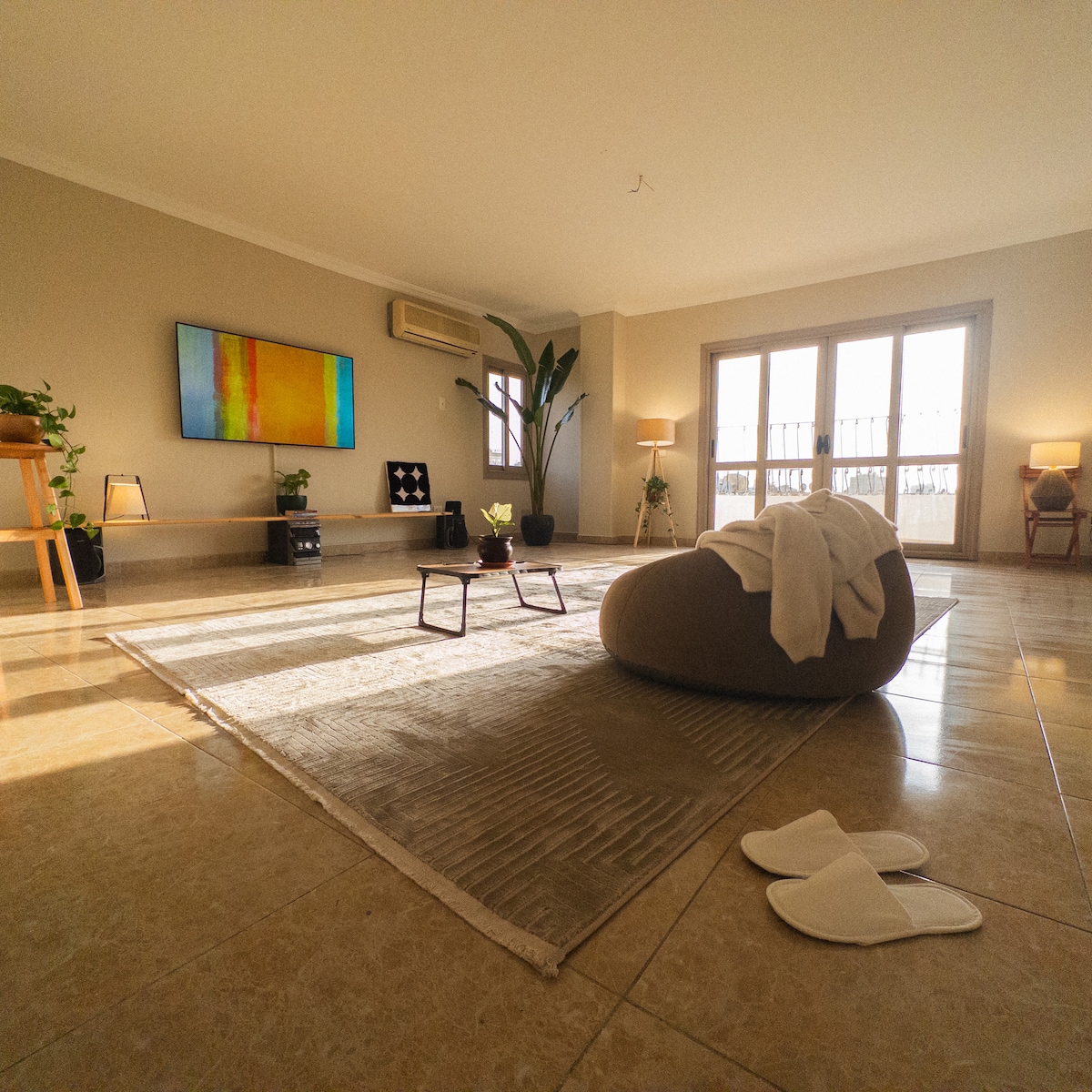 Bienvenido a uno de nuestros tres estudios excepcionales, ubicado en el exclusivo barrio de Degla, Maadi. Diseñado por un talentoso diseñador de interiores, este estudio combina armoniosamente comodidad, elegancia, privacidad y creatividad de una manera que solo un verdadero profesional puede lograr. Cada centímetro de esta casa ha sido diseñado con cuidado, ofreciendo un ambiente cálido y acogedor que se siente como si estuviera hecho solo para ti. Es realmente mágico. Revisa atentamente las normas de la casa antes de reservar. Solo tardarás un momento.