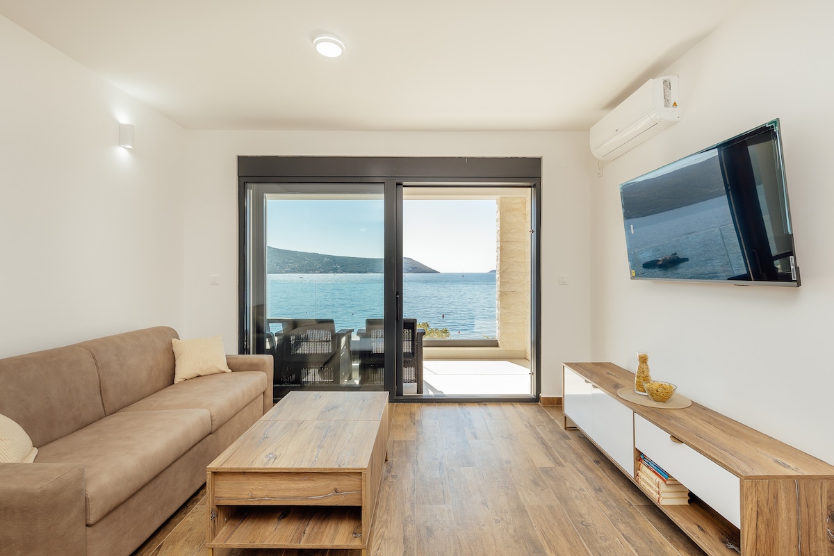 Despierta con impresionantes vistas del Adriático en este apartamento renovado frente al mar en el famoso paseo marítimo de Herceg Novi. Disfruta de un gran balcón privado con vistas al mar en primera fila, perfecto para el café de la mañana o las bebidas al atardecer, y una playa a solo 20 metros de distancia. Totalmente renovado en 2022, el espacio es ideal para parejas o familias pequeñas que buscan explorar el cercano casco antiguo y muchas cafeterías y restaurantes que están a pocos pasos, ofreciendo la mezcla perfecta de relajación y vibrante energía de verano.