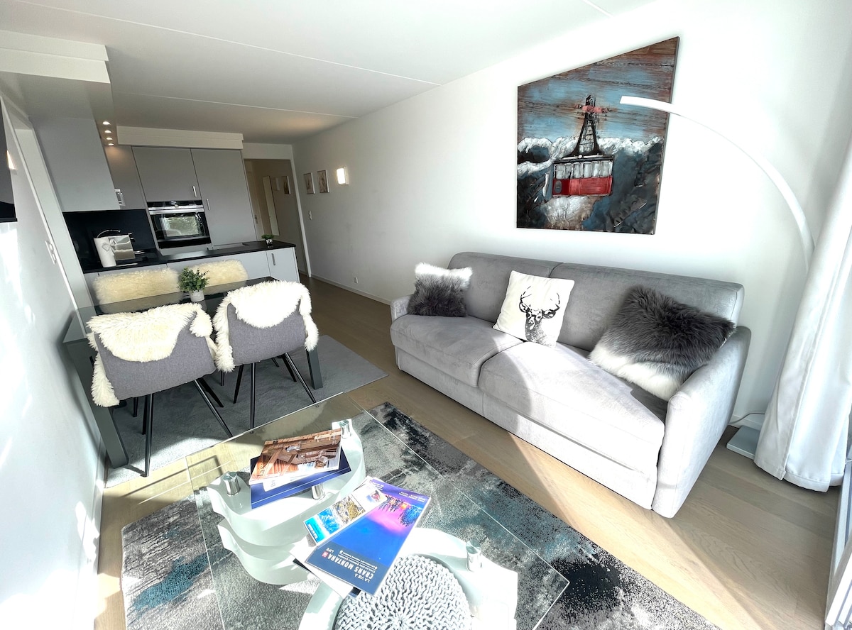 Magnífico apartamento, que incluye 1 dormitorio con una cama doble, una sala de estar con un cómodo sofá cama, cocina y un baño. Bonita terraza, muy soleada. Jacuzzi y sauna. Plaza de estacionamiento privada al pie del chalet. Liberty-pass para 2 personas desde finales de mayo hasta principios de noviembre (autobuses gratuitos, tenis, piscina y más de 20 actividades gratuitas! Reducción del 50% en los teleféricos) Nuevo: terminal para cargar tu auto eléctrico.