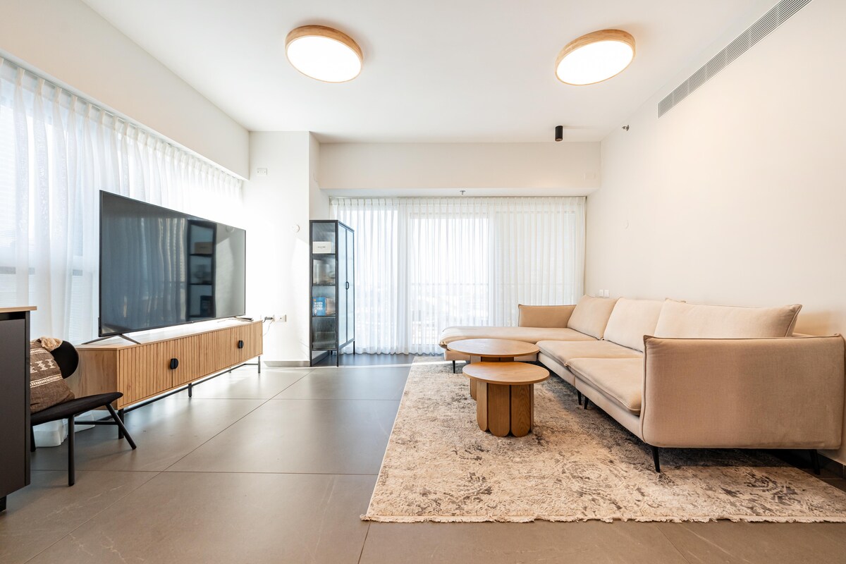 Te damos la bienvenida a The Sharon Crown Suite, un lujoso y único refugio con dos balcones privados con vistas al infinito azul del Mediterráneo. Diseñada con arquitectura de alta gama y llena de luz natural, esta elegante y espaciosa suite combina comodidad y privacidad, ideal para parejas, familias o viajeros solitarios. Disfruta de acceso directo a la playa, un animado paseo marítimo, restaurantes de clase mundial y servicios de primera calidad. ¡Reserva tu estancia y experimenta la joya de la corona de Herzliya!