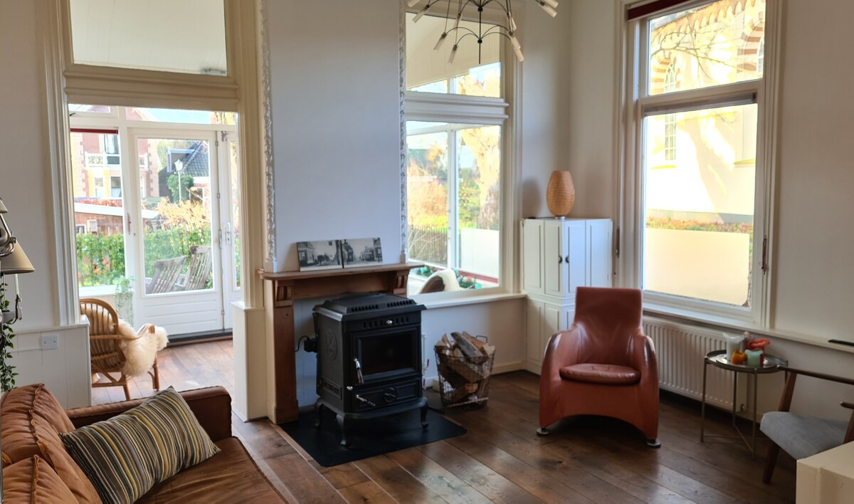 Queremos compartir esta casa especial en un jardín de cuento de hadas con otras personas. La casa está decorada con buen gusto en art déco y equipada con todas las comodidades. Además, además de la sauna, la casa tiene una gran terraza cubierta y un jardín de 700 m². En el bosque, el refrigerio de verano es el estanque de 15 metros de largo y las vistas del dique de Waddenzee. De julio a septiembre, se puede recoger fruta en el jardín. Ofrecemos una ubicación única con mucha privacidad para relajarse.