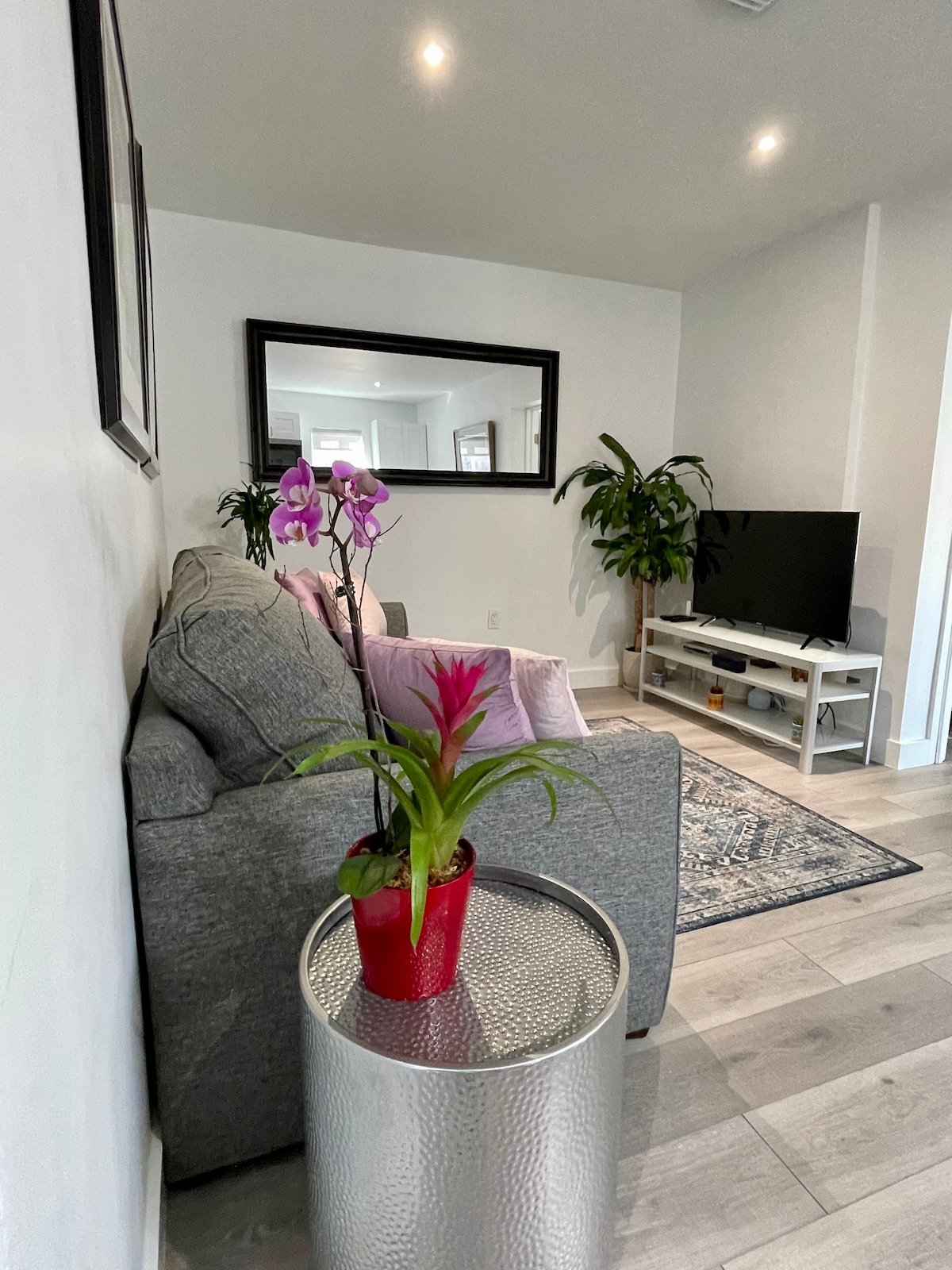 Tómate un descanso y relájate en este tranquilo oasis tropical. Suite privada de 2 habitaciones con baño, dividida de la casa principal (como un lado de un dúplex), con dos entradas privadas (delantera y trasera) y un camino de entrada separado. Acceso directo a los jardines y la piscina del patio trasero. * No recomendado para huéspedes que quieran cocinar, ya que no hay una cocina de tamaño completo, sino una pequeña cocina con espacio limitado en la encimera. Ideal para asar al aire libre, ya que hay una parrilla de gas con propano.