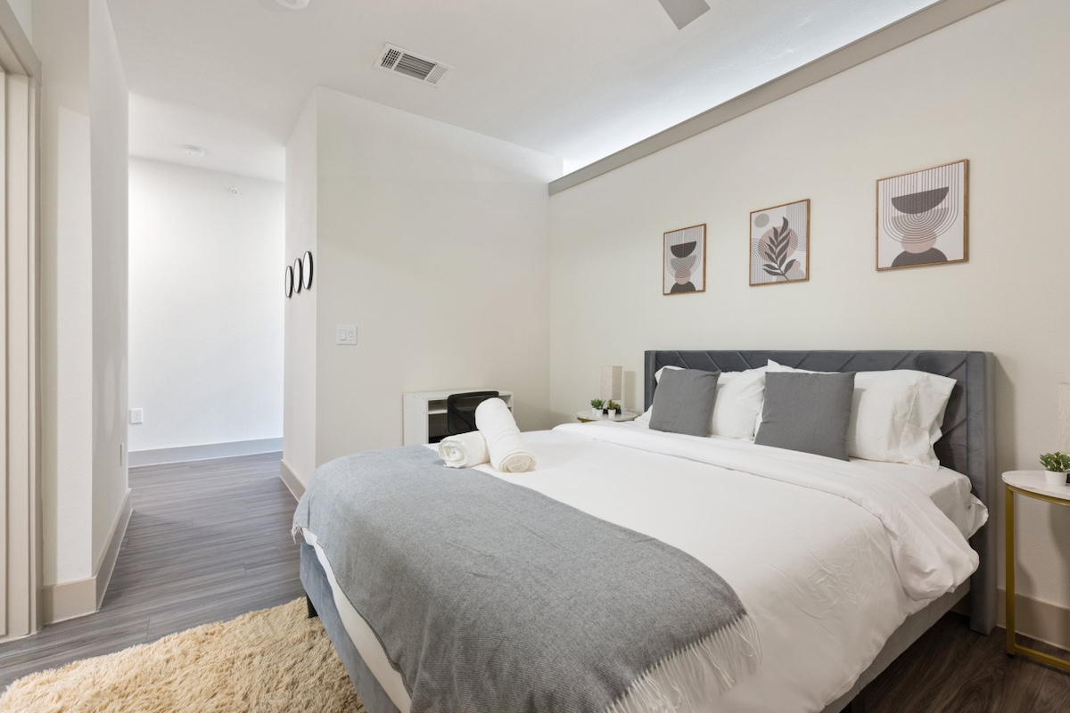¡Nuestro apartamento cuidadosamente diseñado ofrece una mezcla perfecta de comodidad y estilo, por lo que es una excelente opción para los profesionales que viajan a Dallas! Con una ubicación céntrica, tendrás fácil acceso a los principales distritos de negocios, restaurantes, tiendas y entretenimiento. El apartamento viene totalmente equipado con todo lo que necesitas, incluida una cocina totalmente equipada, wifi rápido, un escritorio, acceso al gimnasio, estacionamiento gratuito en el estacionamiento y una cómoda cama para relajarse después de un día productivo.
