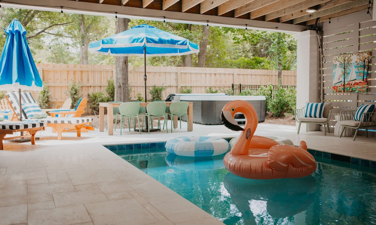 Escape to Tide House, a 2024 custom 6BR, 5BA home—just 0.6 miles from Folly Field Beach. The ultimate Hilton Head retreat with premium amenities! • Heated Private Pool ($125/week) • Outdoor Patio/Dining + TV • Hot Tub • Fire Pit • Putting Green • BBQ Grill • Poker/ Ping-Pong Table • Corn Hole, Board & Card Games • Fully Stocked Kitchen • TVs in Each Bedroom • Kids' Toys, Games & Xbox Game Center • Beach Essentials • Ample Parking • Washer & Dryer • Wi-Fi