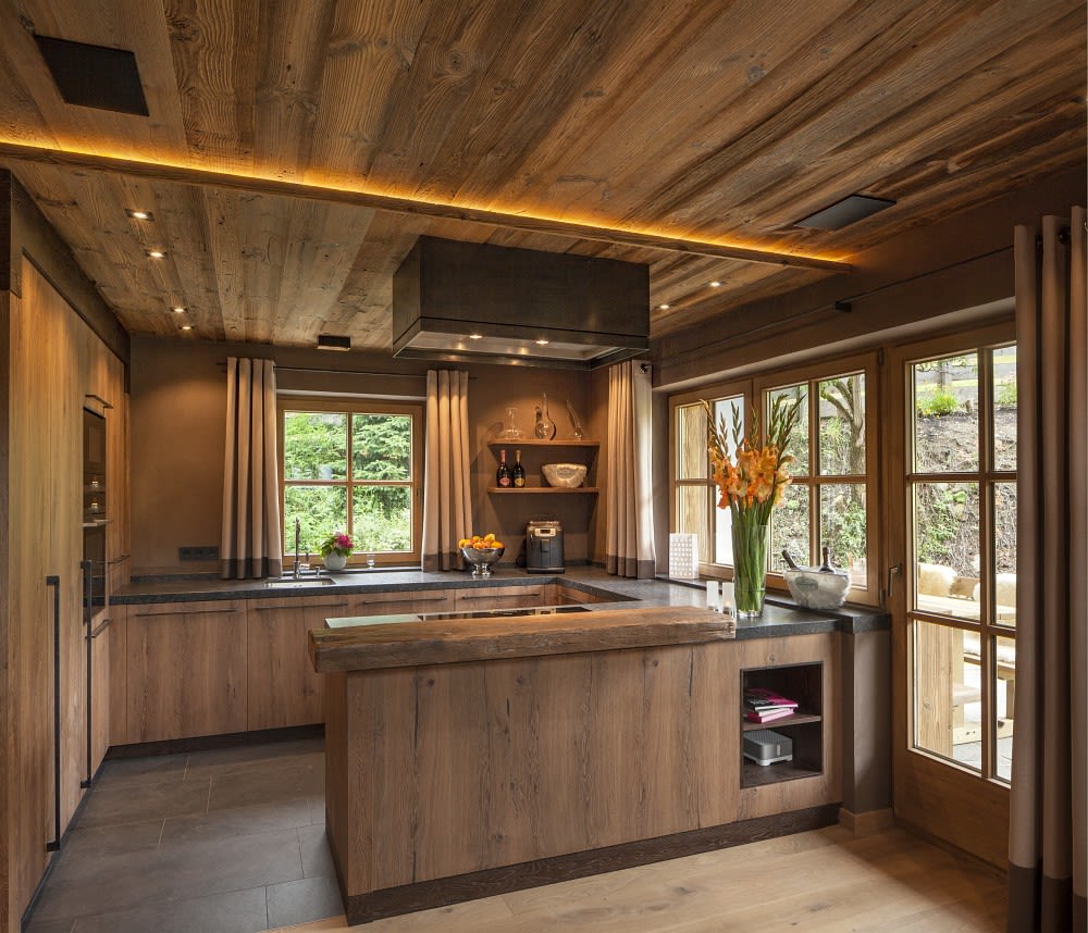Our homey mountain retreat used to be my grandparents' place and has been completely renovated just recently. We wanted to preserve the snug and cosy traditional atmosphere with a combination of traditional furniture and a more modern almost minimalistic kind of interior. We kept parts of the traditional furniture and a beautiful collection of my granddad's handcarved portraits on the ground floor and combined it with bright wood and white on the first floor to leaven the atmosphere.