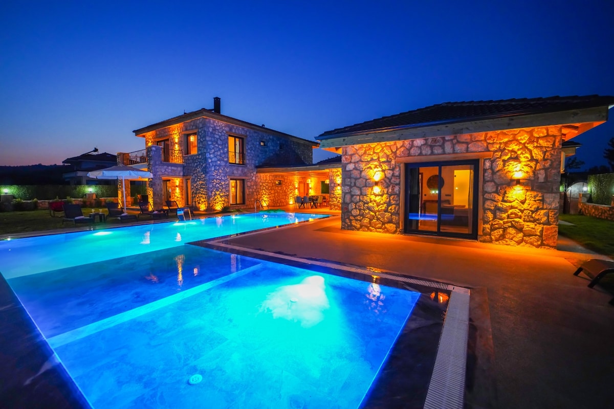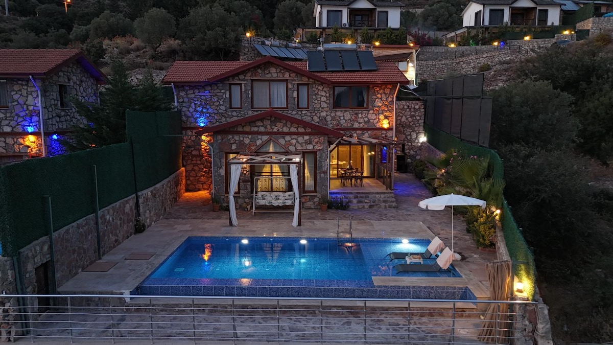 Este lugar único tiene su propio estilo. Nuestra villa tiene 2 piscinas grandes, interiores y exteriores, ubicadas en Kayaköy, Fethiye. Disponemos de calefacción en la piscina en el interior. También hay una bañera de hidromasaje en la piscina exterior e interior. La villa está cuidadosamente amueblada en un concepto de lujo y cuenta con una piscina protegida. Ofrece unas vacaciones magníficas para parejas de luna de miel y familias nucleares. A 10-15 minutos del centro de Fethiye o del centro de Ölüdeniz. Con estacionamiento privado.