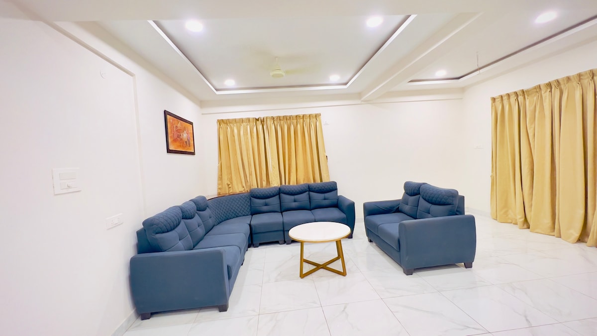 Welcome to our Stylish 3 BHK apartment, perfect for short or long stays. Enjoy 3 AC bedrooms with private baths, a cozy living room with a 43" Smart TV, high-speed WiFi, and an indoor swing. The kitchen is fully equipped with a gas stove, microwave, RO purifier, fridge, and utensils. Relax at the spacious dining table or read from our book collection. Located near Hitech City Metro, Rameshwaram Cafe (100m), US Visa Center (1km), Cable Bridge, IT hubs,