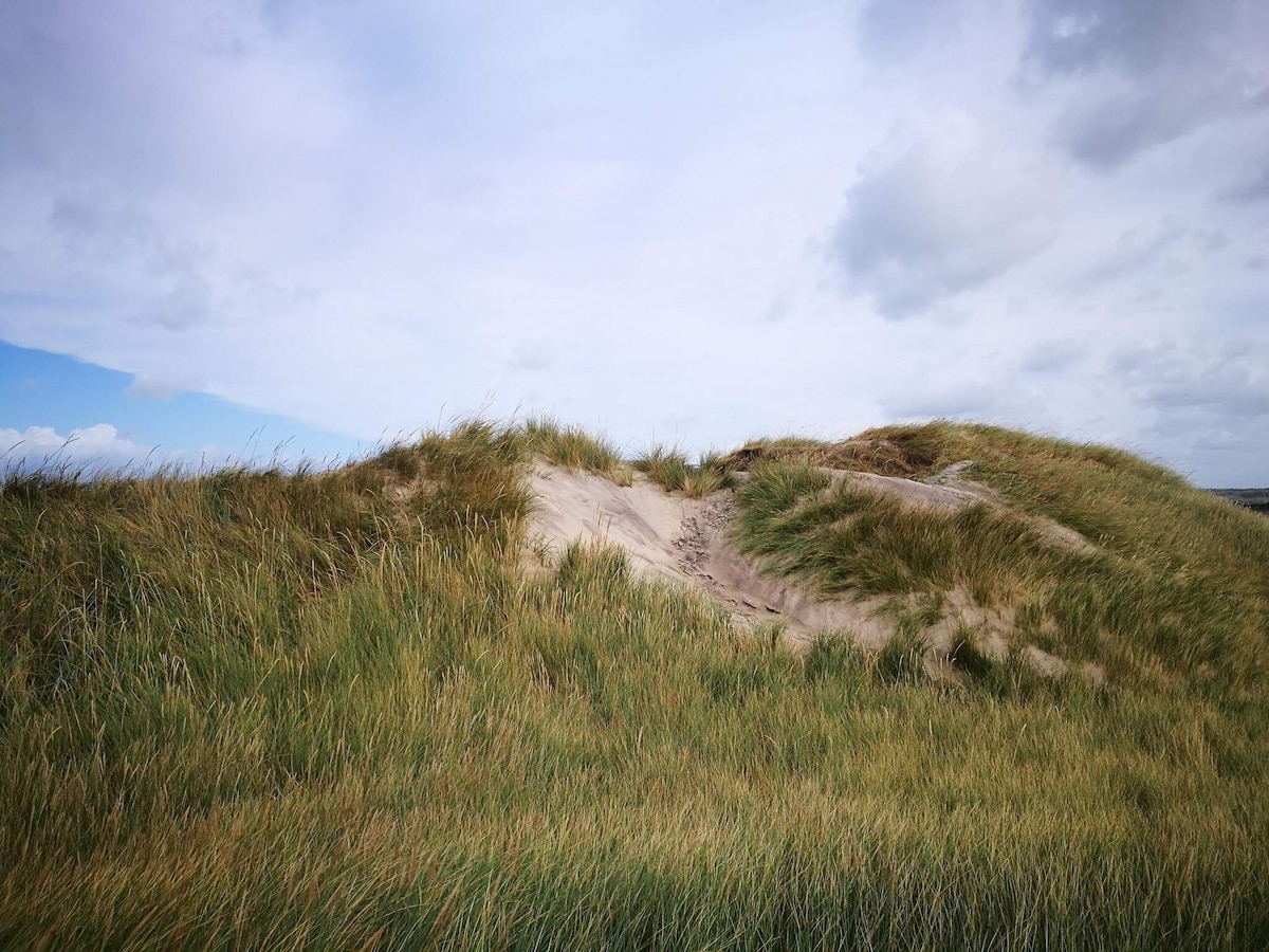 Få en natur oplevelse i vores hus ved Vesterhavet . Huset har en skøn havudsigt og en idylliske beliggenhed omgivet af marehalm og hybenroser. Oplev smukke solnedgange fra stue, køkken og på en af terrasserne. Blot 100 meter fra huset, under 5 minutters gåtur er Vesterhavet, så du kan både se og høre bølgerne på vores terrasse. Ved din ankomst vil du kunne slappe af, da vi allerede har redt din seng og lagt brænde frem til dig.