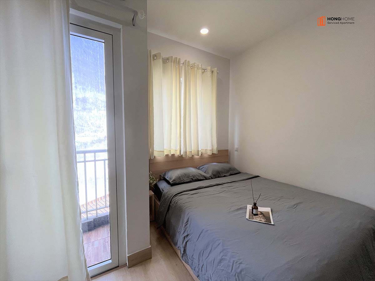 Located in District 2, Kim Apartment is an elegant minimalist one-bedroom retreat just 5 minutes from Thao Dien cafés, Vincom Mega Mall, and Metro Line 1. It features a double bed, built-in wardrobe, open living area with equipped kitchen and washing machine, and an east-facing balcony perfect for sunrise views overlooking a courtyard. Enjoy high-speed Wi-Fi, cable TV, inverter AC, 24/7 security, and fast elevator. Your boutique home in Ho Chi Minh City awaits.