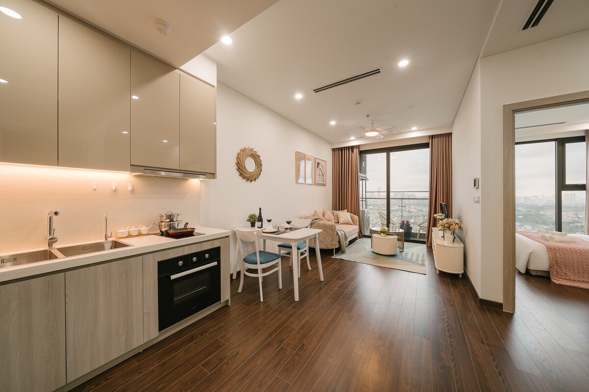 Bienvenido al apartamento de 2 dormitorios "Luxury Retreat" en el corazón de Vinhomes Smart City. Este no es solo un apartamento nuevo, sino un lugar donde me he dedicado a cuidar cada pequeño rincón, deseando brindarte las vacaciones más relajantes y elegantes. Cálida bienvenida: el equipo de recepción y el personal siempre están sonriendo para darte la bienvenida con el estilo elegante de un hotel de 5 estrellas.