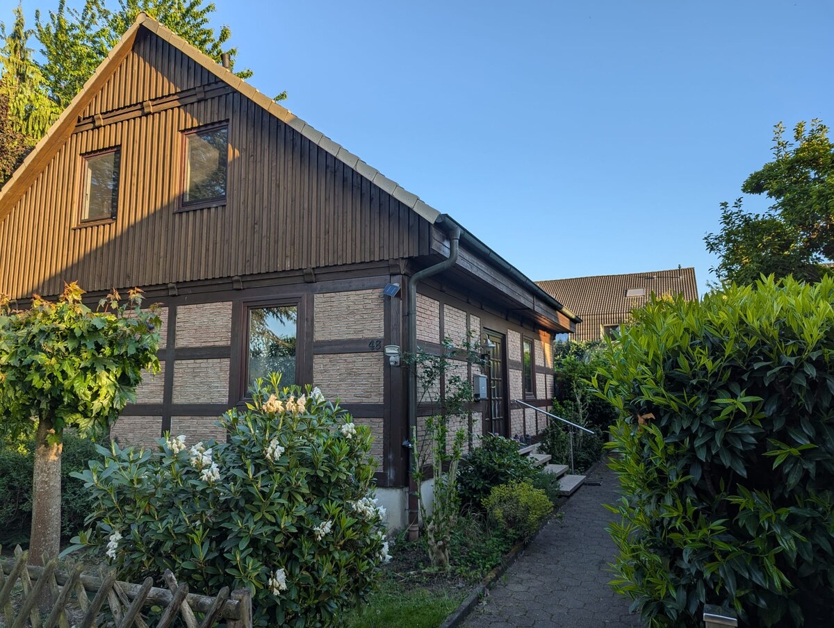 ¡Te damos la bienvenida a tu retiro verde! El acogedor apartamento de 30 m² en el sótano de la casa de entramado de madera ofrece cocina, baño, wifi y TV. Ubicado en una zona tranquila en el borde del campo, se puede caminar hasta el centro de la ciudad en 1,5 km. Se puede llegar fácilmente a ciudades como Colonia, Düsseldorf y Münster en coche (aproximadamente 1 hora) o en tren. A poca distancia a pie hay buenas conexiones de transporte público, tiendas y el parque termal, así como el estadio de Dortmund y el recinto ferial. A 10 minutos en coche del aeropuerto, ideal para amantes de la naturaleza, viajeros y exploradores de la ciudad.