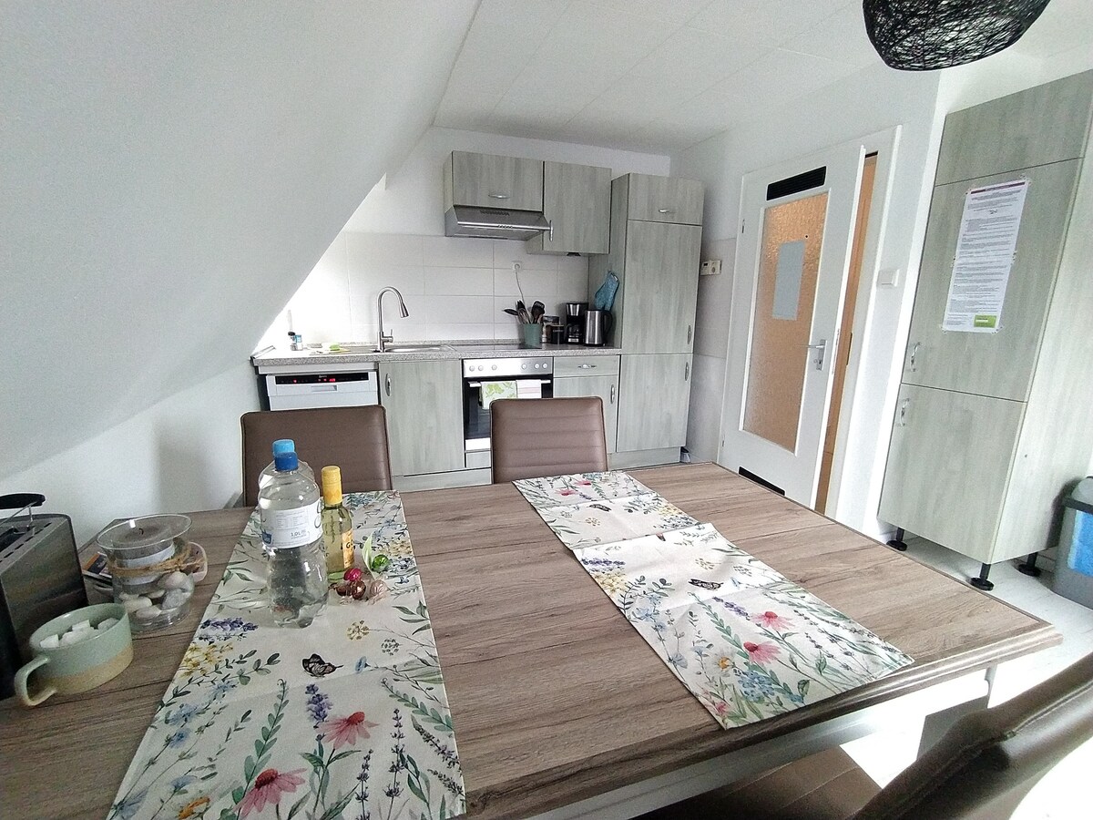 Nuestro apartamento tiene un nuevo parque infantil fuera de la casa, está a cinco minutos en coche del lago y a quince minutos de la ciudad de esquí de Willingen. El apartamento de 65 metros cuadrados comprende un dormitorio doble, un sofá cama doble en la sala de estar y un sofá cama doble en el pasillo. El baño tiene una ducha apta para niños. Tiene un balcón y un jardín para relajarse. Las bicicletas, la lavadora y la secadora se encuentran en la bodega. Es ideal para parejas y familias, con juguetes para niños y un proyector para ver películas juntos