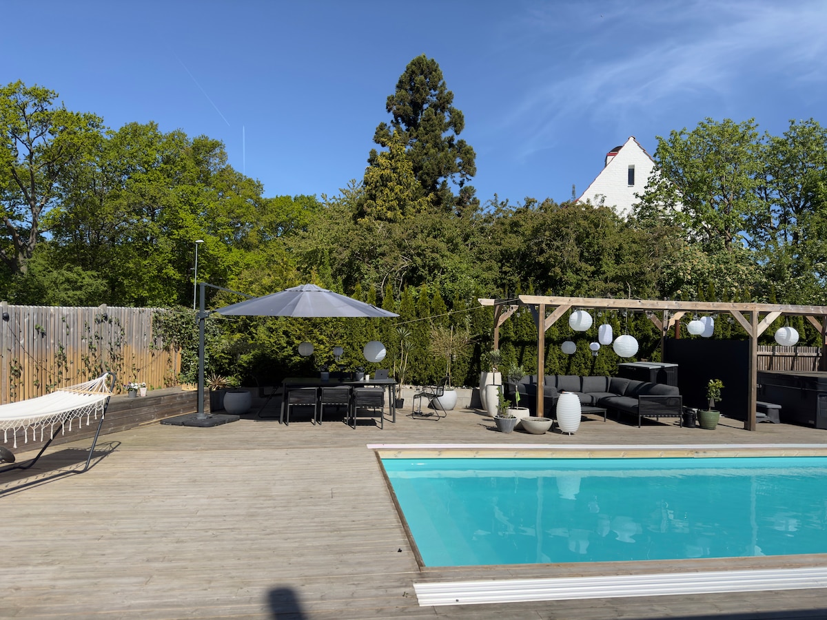 Casa grande en tres plantas con espacio para toda la familia o grupo de amigos. Cocina totalmente equipada, salón, 4-5 dormitorios, 2 baños con ducha. Jardín con gran terraza de madera, piscina climatizada, sauna y comedor. Sala de pasatiempos con mesa de ping pong. Balcón en el tercer piso donde se puede disfrutar de la puesta de sol. Cerca de ambos servicios, ciudad y naturaleza. A 500 metros de Ica, a 250 metros de la parada de autobús, a 1 km del bosque de Pålsjö, a 2 km del mar. A 5 km de la ciudad de Helsingborg, con una rica oferta cultural y de restaurantes.