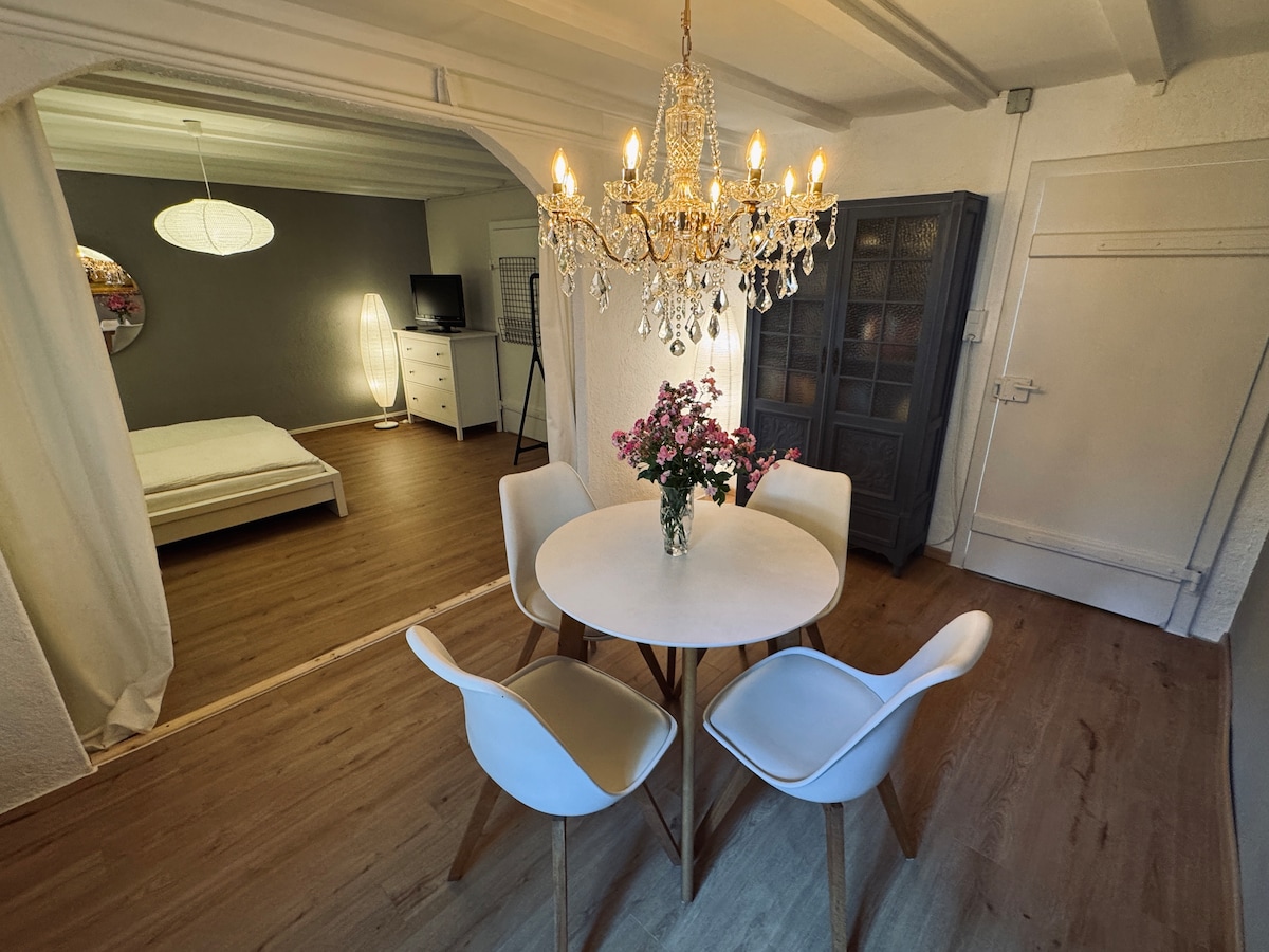 Nuestro ático, decorado con mucho cariño, ático en una casa de campo del siglo XVI es tranquilo y céntrico. Podrás relajarte dando largos paseos por los hermosos bosques o por la idílica orilla del Rin, con sus numerosos lugares de baño. En 5 minutos se puede llegar a pie a restaurantes, supermercados, piscina y estación de tren. Jestetten es el punto de partida ideal para excursiones a destinos como la Selva Negra, el lago de Constanza, Zúrich y los Alpes. Los trenes a Zúrich y Schaffhausen salen cada media hora.