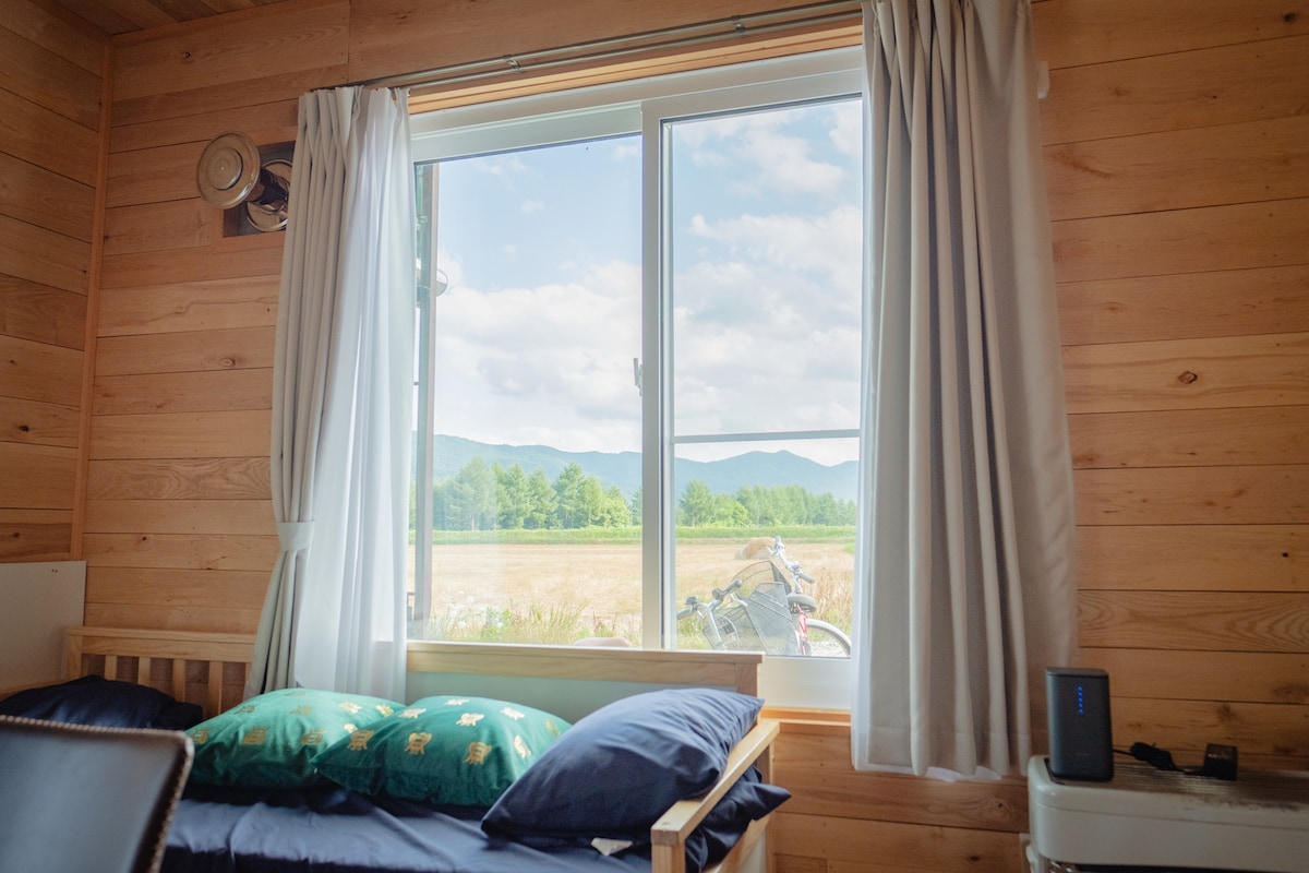 This is a container-style hotel located in the Shirogane Onsen area of Biei. You can reach the ski area by car. The property features a wooden deck and a complete BBQ set, allowing guests to enjoy barbecues. Since the deck is covered, you can have a BBQ not only in summer but also in winter. There is also an exclusive dog run for guests, so you can have a great time with your pets. (Please note that an additional fee applies when bringing pets.)