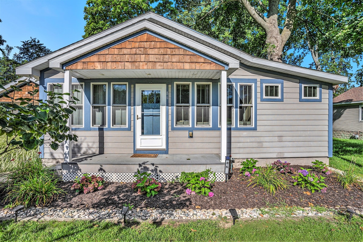 Disfruta de las puestas de sol privadas diarias en esta acogedora casa en la orilla del lago Míchigan. Relájate en la terraza o en el solárium mientras disfrutas de las impresionantes vistas al lago. El plano de piso abierto es perfecto para pasar tiempo con tus seres queridos y la cocina totalmente equipada es ideal para comer. Con 70 pies de fachada privada en el acantilado, los sonidos relajantes de las olas mejoran la tranquilidad de este refugio vacacional. El acceso al lago está a solo una cuadra por un camino. Esta ubicación aislada está a solo 12 minutos de la ciudad.