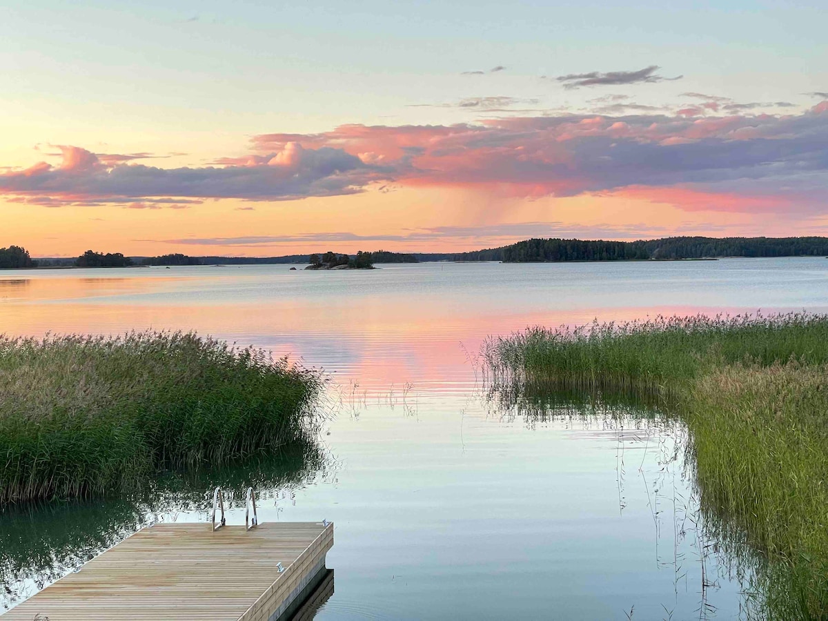 Casa totalmente equipada en el lago Päijänne. Orientada al sur y al oeste. Playa propia. Terminada en 2016, inodoro de agua, calefacción por suelo radiante, aire acondicionado, lavavajillas, lavadora, sauna, ducha, parrilla para barbacoa, wifi. Distancia a Helsinki 145 km, Lahti 45 km, Vääksy 25 km, pueblo de Kalkkinen 9 km (tienda de comestibles), centro deportivo de Vierumäki 40 km. Actividades: Parque Nacional de Päijänne a 22 km (Pulkkilan harju), Centro Deportivo de Vierumäki (actividades de ocio), a 40 km, 5 campos de golf a 25-40 km, Museo de Päijänne, a 22 km.