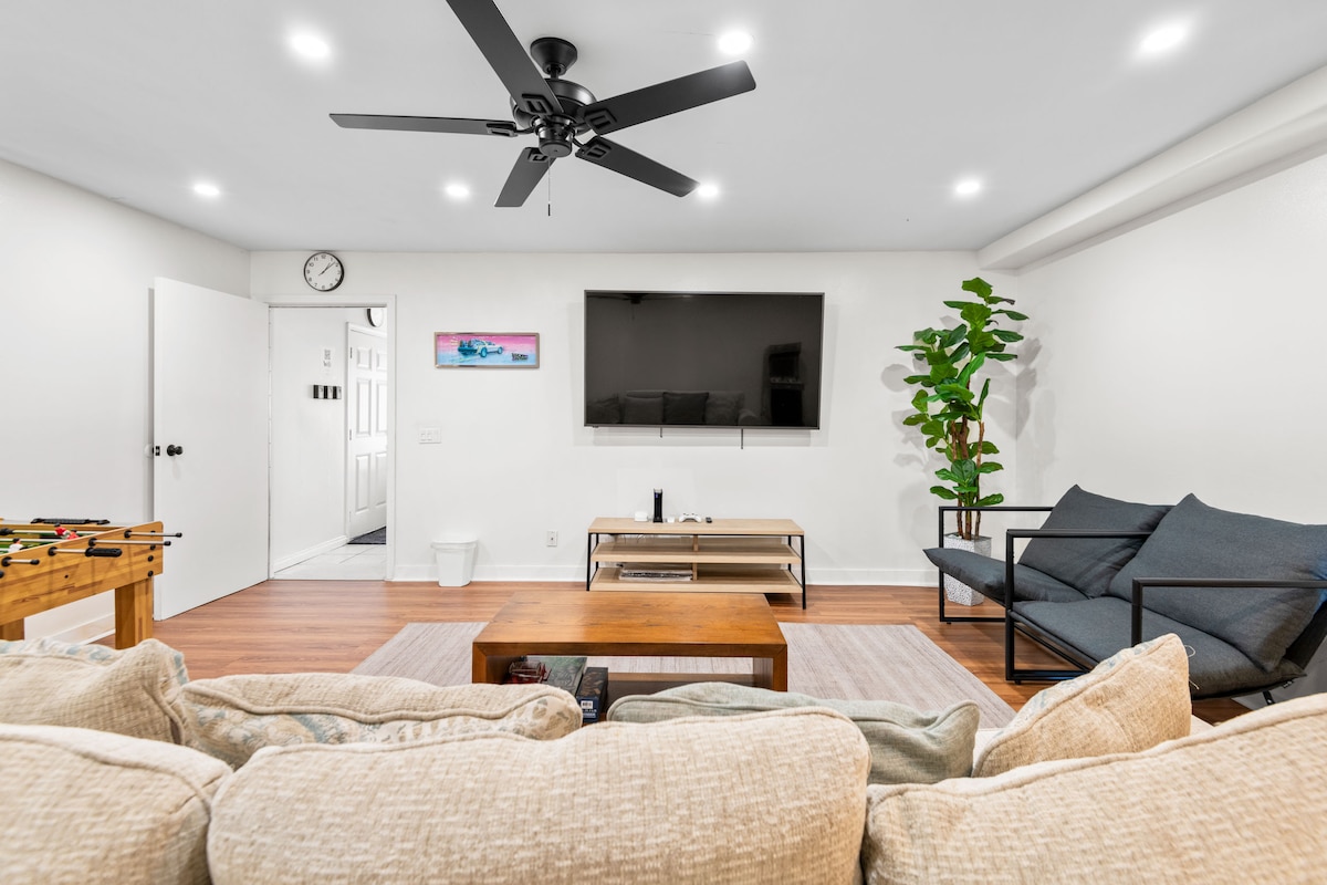 Relájate después de un día ajetreado con tu propia sala de estar privada estilo cine. Está equipado con un proyector de cine 4K de pared a pared, un cómodo sillón reclinable y un sofá para ver películas, tus juegos favoritos o televisión en vivo. Toda la casa está equipada con la última tecnología, como cargador inalámbrico, radio bluetooth y un altavoz inteligente. Este bungalow se encuentra en una zona histórica, accesible a través de un callejón trasero privado y viene con UNA plaza de aparcamiento dedicada y cerrada, COCINA COMPLETA con lavavajillas.
