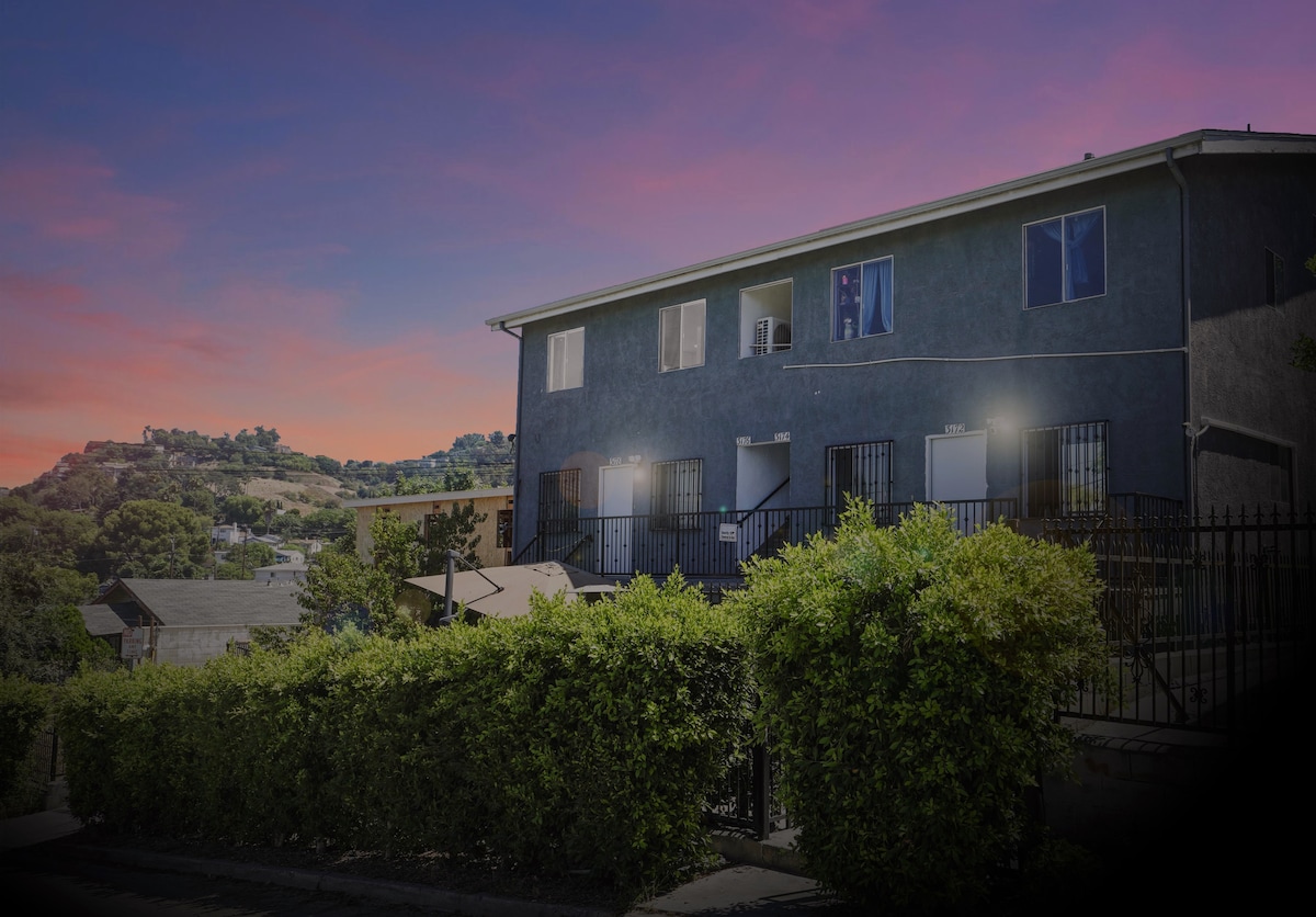 ¡Bienvenido a nuestro apartamento con servicios de 2 dormitorios y 2 baños en Glassell Park ( LA ), UN estacionamiento gratuito! Tiene capacidad para 6 huéspedes, espacio de trabajo y televisores en todas las habitaciones. Esta casa céntrica ofrece impresionantes vistas a la ciudad y las montañas. Disfruta del ambiente luminoso y espacioso, perfecto para una estancia relajante. Estamos a 12 millas de Universal. Hay obras finalizando en el lote junto a nuestra unidad. Es posible que escuches sonidos ocasionales de construcción en ciertos días. Solo estacionamiento en la calle, limitado pero disponible.