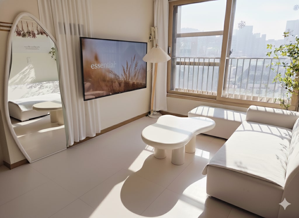 Sunny ubicado en Mangwon-dong Esto es Studio Malgeum. Deja tus inquietudes diarias en 'MALGEUM' por un tiempo, Mímate y disfruta del sol de la mañana a la tarde. Y luego, alrededor del atardecer, se convierte en un color bastante hermoso. Puedes ver la puesta de sol. Luego, camina directamente hasta la cueva. Compra ingredientes y vino. O ir a un restaurante en Mangwon-dong. También podrás disfrutar de pollo frito en el río Han. Todos los que han estado en MALGEUM ¡Tiene un día despejado!
