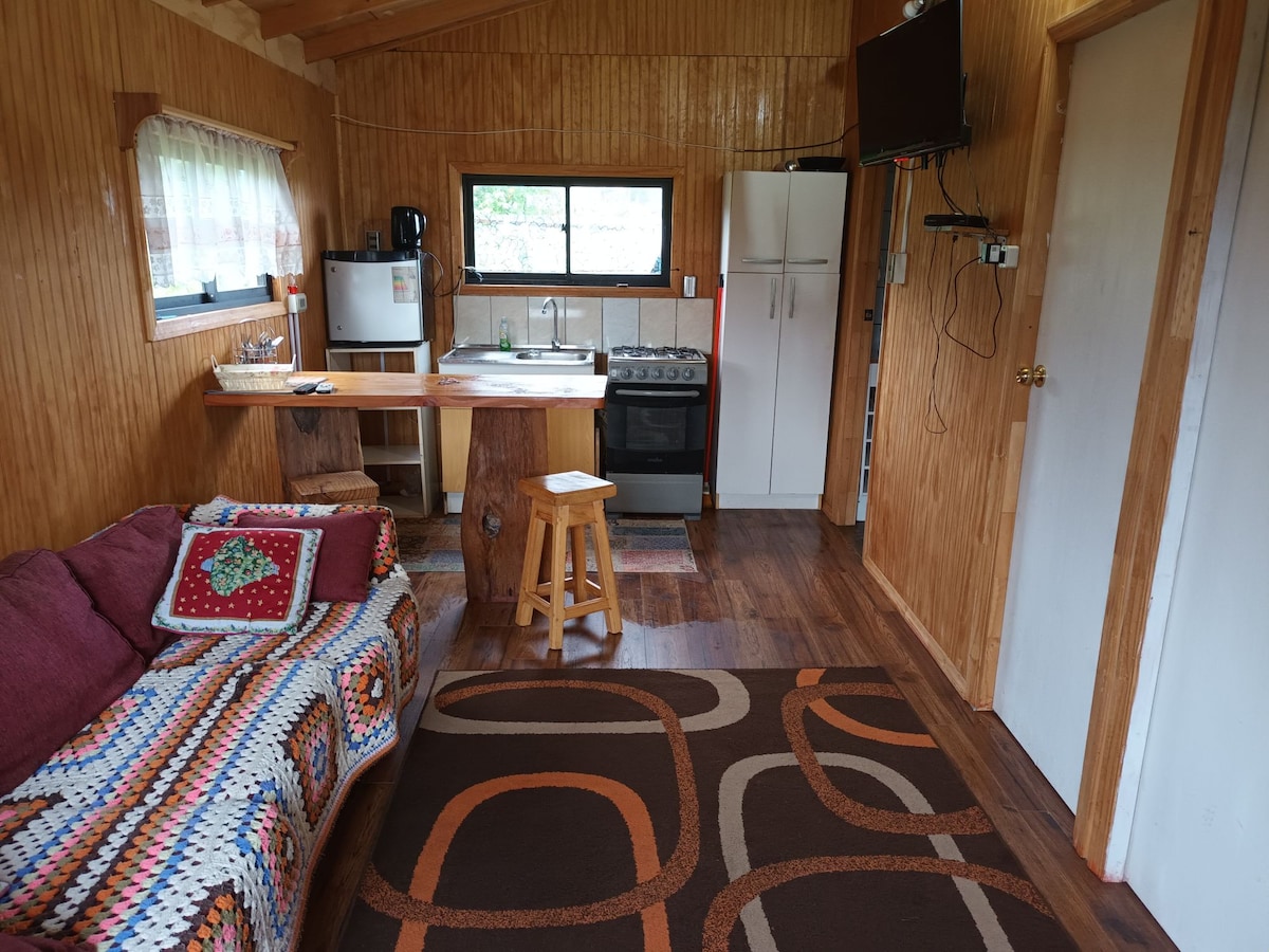 Cabaña independiente para 2 personas, ideal para relajarse, a 5 minutos del centro (en vehículo). Cuenta con todo lo necesario para su estadía. En nuestro alojamiento consideramos la comodidad, la seguridad, la relación calidad-precio, y un espacio que se adapte a tus necesidades