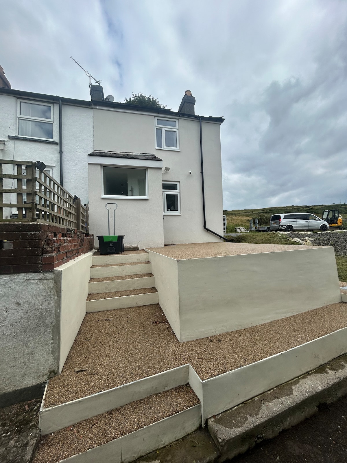 This end terrace cottage has a quirky style of its own. It has full central heating. Lounge is a good size with sofa and a matching arm chair, dining table, electric fire (log burner effect). It has a staircase that leads to a gallery landing and mezanine bedroom, with a king size bed, and en-suite shower room. The kitchen is very well equipped, with a washing machine, dishwasher, fridge freezer, microwave, electric hob and oven. Ground floor W.C.