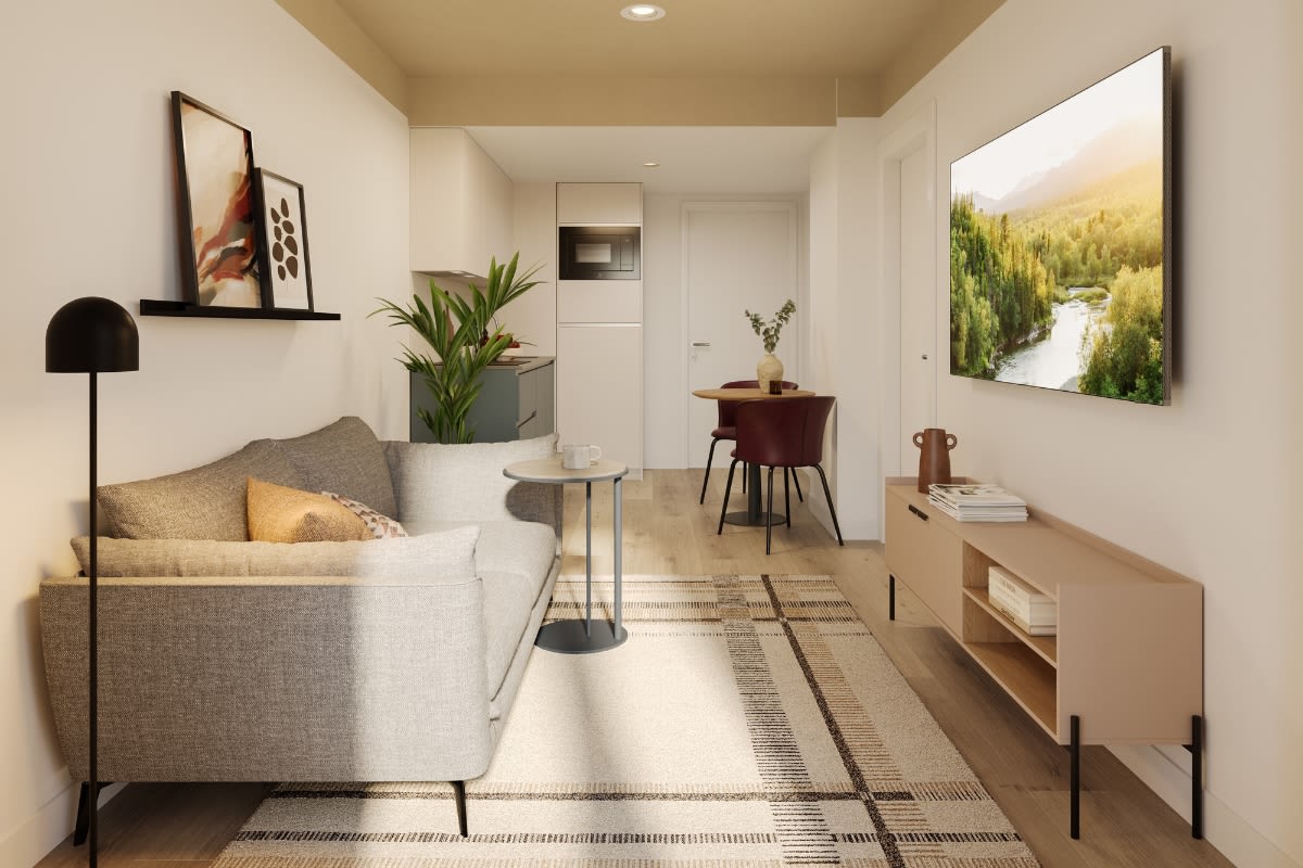 Apertura en marzo de 2025 Apartamento de una habitación completamente amueblado, equipado con todo lo necesario para que te sientas como en casa desde el primer día. Incluye una zona de estar con sofá, televisor y mesa auxiliar, una zona de comedor con una cocina completa, cuarto de baño con ducha, acogedora habitación con cama de 135cm x 200cm y un amplio armario. Si requieres una vivienda accesible, que incluya terraza o jardín, reservar una plaza de parking, contáctanos.