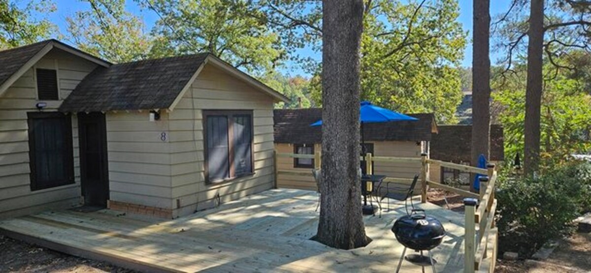 Esta linda casita está llena de encanto y carácter. Ubicada en un gran terreno sombreado por árboles justo al lado del canal principal del lago Hamilton. La cocina comedor está equipada con todo lo que necesitas, desde ollas, sartenes, utensilios de cocina, especias, café, té y mucho más. Sumérgete en la arquitectura, el arte y la historia de Hot Springs, ya que la casa de campo se encuentra a solo unos kilómetros de las tiendas del centro, restaurantes, Bathhouse Row, Northwoods Trails y el Parque Nacional Hot Springs.