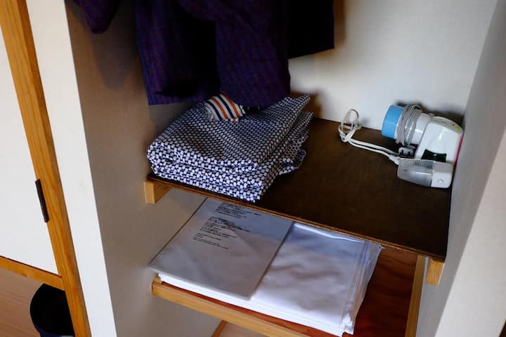 Las habitaciones de la casa de huéspedes de Sakuya están equipadas con televisión y baño privado. Se proporcionan zapatillas y ropa de noche.
