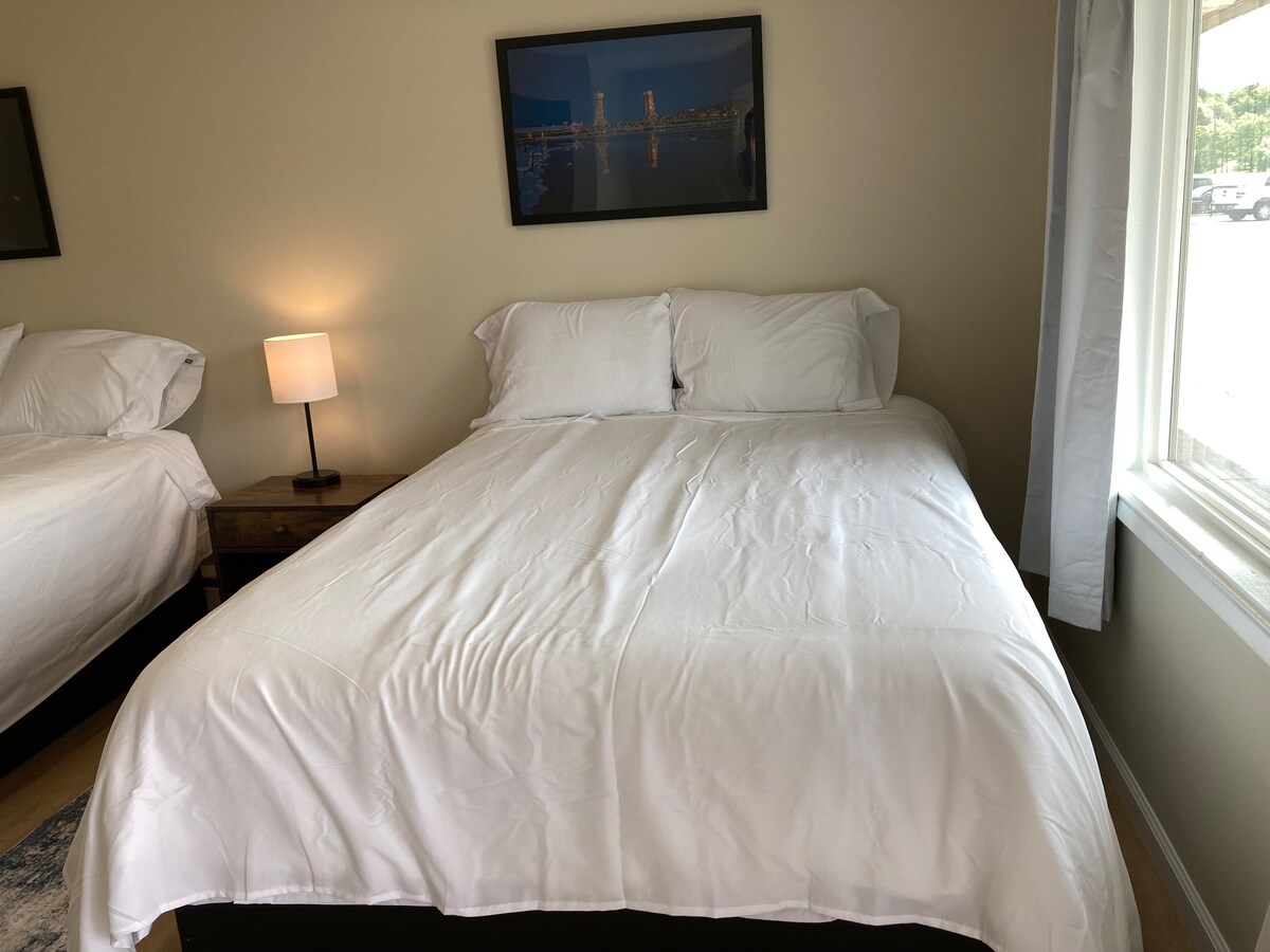 ¡Nuestra primera habitación recientemente renovada! Ven a alojarte en la habitación 11 y disfruta del mobiliario fresco. Ubicación conveniente justo en el sendero para motos de nieve con un montón de estacionamiento de remolques disponible y un increíble restaurante justo al lado. Un gran lugar para comenzar y terminar el día sin romper el banco. ¡Ahora no ofrece ninguna tarifa de limpieza!