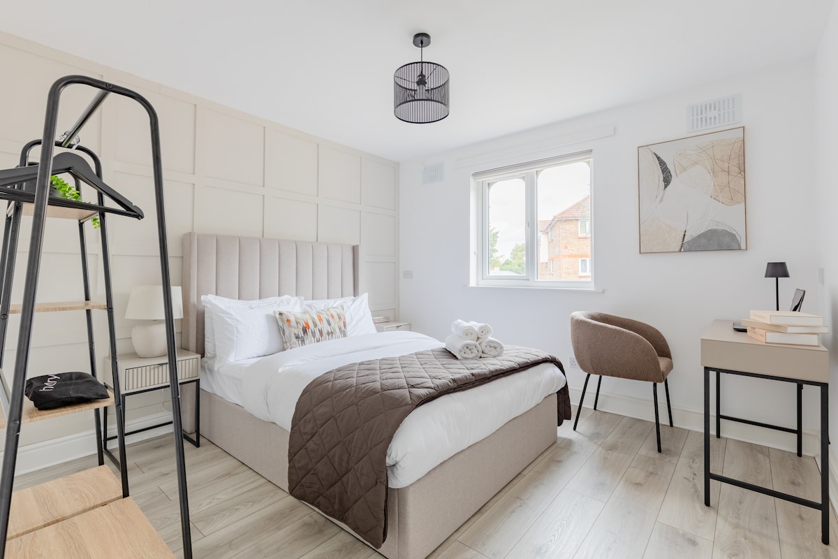 - A 2 minutos a pie de la estación de Hounslow East en la línea Piccadilly - A 25 minutos en tren del centro de Londres - A 15 minutos en tren del aeropuerto de Heathrow Apartamento cómodo y moderno con wifi rápido y fácil acceso al metro de Londres. Perfecto para familias pequeñas, contratistas, viajeros de negocios o turistas que buscan explorar o trabajar en Londres. Disfruta de un espacio tranquilo y acogedor con todo lo que necesitas para la productividad o la relajación, además de conexiones de transporte inmejorables a toda la ciudad.