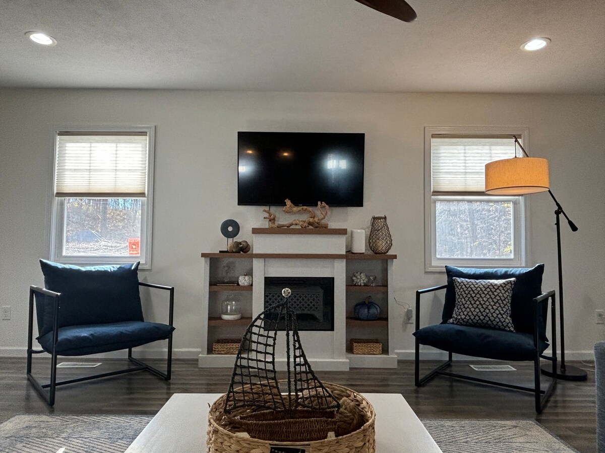 Escápate a esta casa totalmente renovada de 4 dormitorios y 2,5 baños en 10 acres. Perfecto para familias, grupos o trabajo remoto. Disfruta de una gran cocina, wifi rápido, TV inteligente, PS4, escritorio y aire acondicionado central. Relájate en la fogata bajo las estrellas. Cerca del sendero White Pine, el río Muskegon (kayak, tubing, pesca), el bosque nacional Manistee para practicar senderismo, ciclismo, paseos en bote y motos de nieve. Fácil de conducir a Grand Rapids. Ideal para escapadas de fin de semana, estancias largas o trabajo a distancia. Tranquilo, moderno y cerca de la naturaleza.