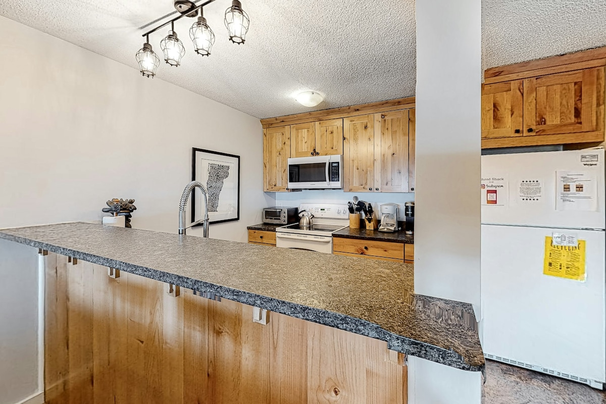 Condominio en la montaña Bromley con acceso directo a las pistas de esquí: ¡chimenea de madera!