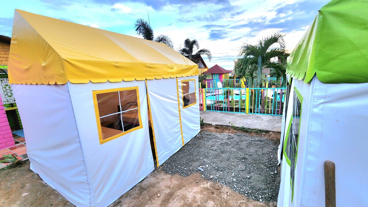 Disfruta de una experiencia de glamping única en medio de la naturaleza. 🌿 Nuestra carpa privada cuenta con una cama queen inflable cómoda, ideal para descansar después de un día explorando la montaña. Tendrás acceso a zonas comunes y senderos naturales. Perfecto para parejas o viajeros que buscan desconectarse y vivir una noche diferente bajo las estrellas.
