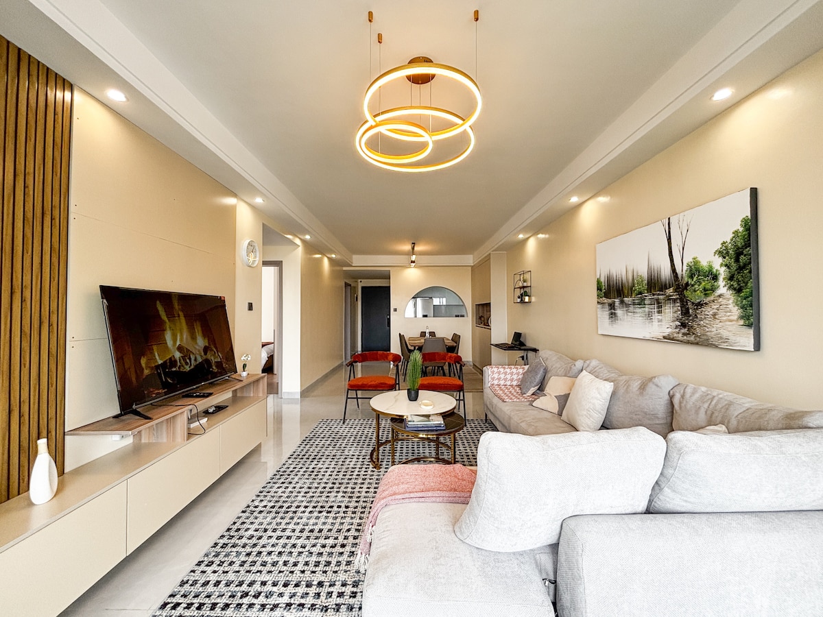 Bienvenido a tu elegante escapada en el décimo piso en Kilimani, a solo 5 minutos del Yaya Center y cerca de Artcaffé, Mama Rocks, el restaurante CJ's, Cedars y Java. Este apartamento luminoso y moderno cuenta con ventanas de pared a pared, vistas panorámicas de la ciudad y todas las comodidades que necesitas para una estancia relajada o productiva. • Piscina cubierta climatizada, gimnasio y zona de juegos para niños • Restaurante en el edificio • Wifi rápido, televisores inteligentes y inversor de respaldo • Aparcamiento gratuito, acceso en ascensor y seguridad 24/7