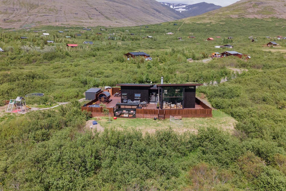 Una escapada tranquila y silenciosa con increíbles vistas al mar. Ubicado en el hermoso fiordo llamado «Hvalfjörður». A solo 45 minutos en coche de la capital. El interior fue completamente renovado en 2024. Puedes relajarte en el jacuzzi y disfrutar de unas vistas increíbles del horizonte durante el verano y es posible que veas la aurora boreal durante el invierno. Es una ubicación perfecta para excursiones de un día para descubrir la península de Snæfellsnes y el círculo de plata y tampoco está lejos del círculo dorado.