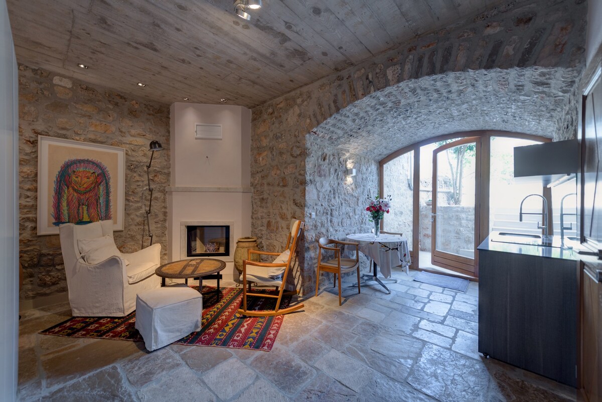 Loft histórico de piedra – Stari Grad, Hvar Escápate a este elegante, espacioso y luminoso loft de piedra del siglo XVIII en el corazón del casco antiguo de Stari Grad. Ubicado en una tranquila calle peatonal, a solo 100 metros del paseo marítimo, tiendas, restaurantes y aparcamiento público, este tranquilo refugio de 2 niveles ofrece una cama tamaño king, baño de estilo spa, cocina completa y un acogedor salón. Con wifi, aire acondicionado y calefacción por suelo radiante, es ideal para parejas, trabajadores a distancia e incluso para aquellos que viajan con un niño pequeño.